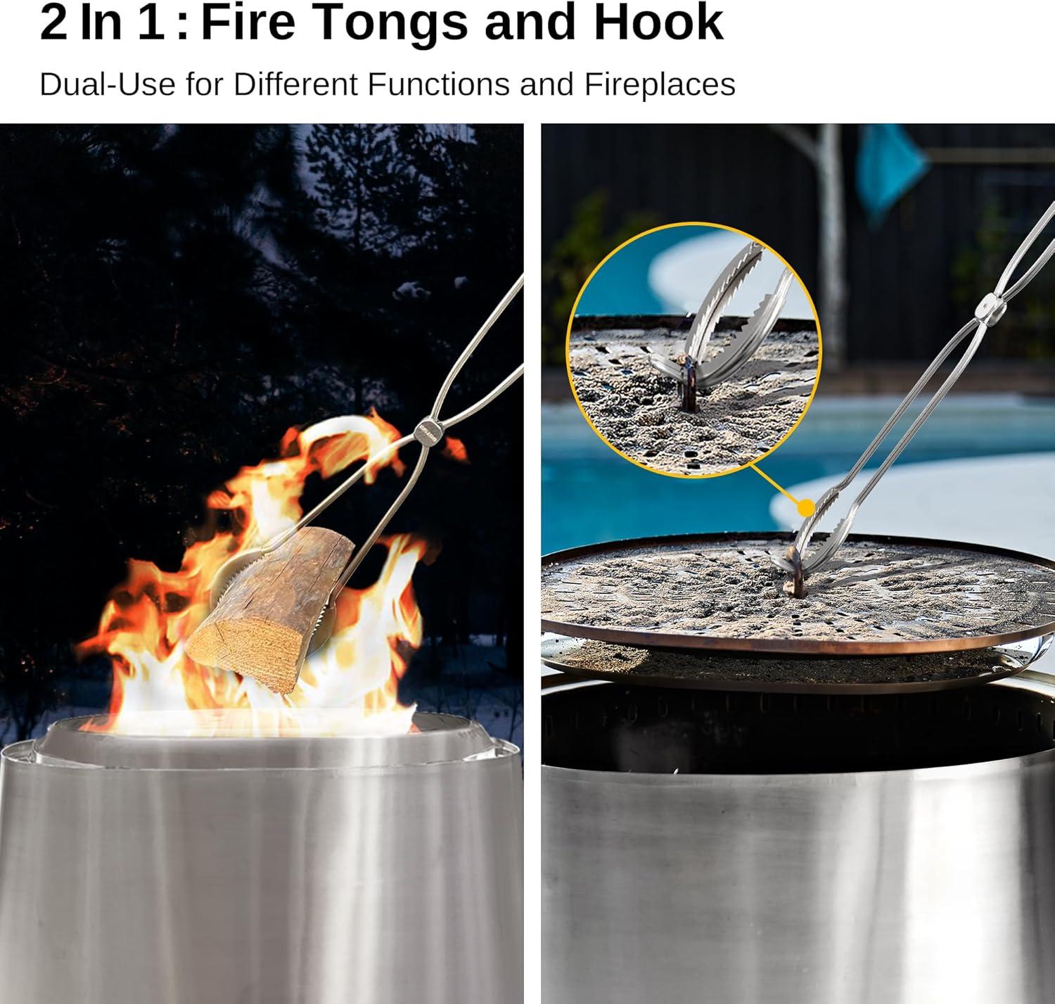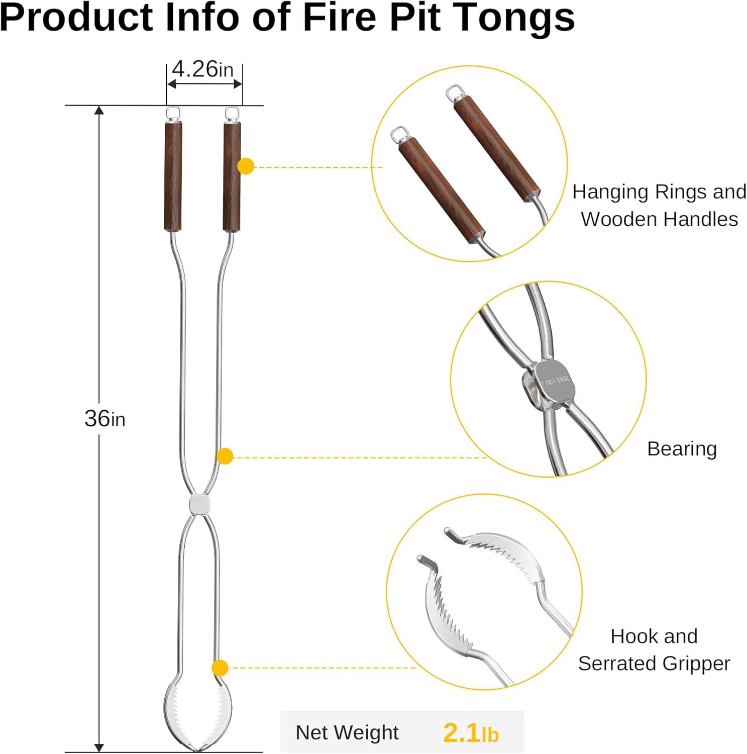 EAST OAK 2 in 1 Fire Pit Tongs and Hook 36'' Poker, Firepit Tools for Wood Fireplaces, Bonfires, Outdoor Fire Rings, Patio and Camping Accessories, with 13" Heat Resistant Gloves, 304 Stainless Steel(Fire Pit Tongs & Hook)