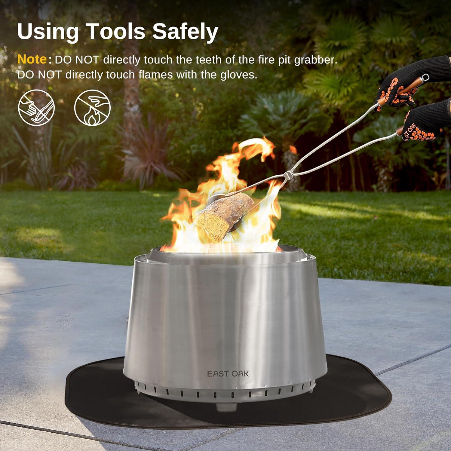 EAST OAK 2 In 1 Fire Pit Tongs and Hook and Heat Resistant Gloves