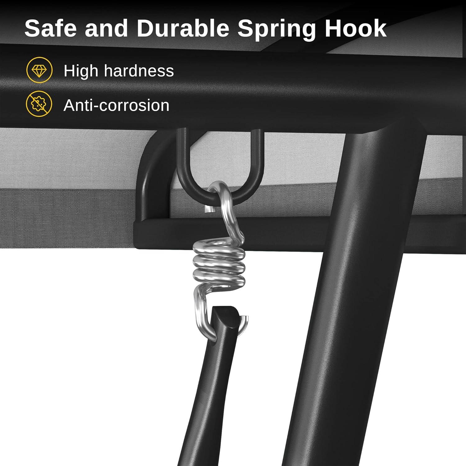 Strong Spring Hook, Weight Capacity: 617 lbs.: Tight and solid spring hooks connect the porch swing with the frame, ensuring a smooth and gentle rocking motion. It comfortably accommodates two people, which provides a solid load-bearing capacity of up to 617 pounds. The EAST OAK 2-Person swing delivers on stability, safety, and longevity