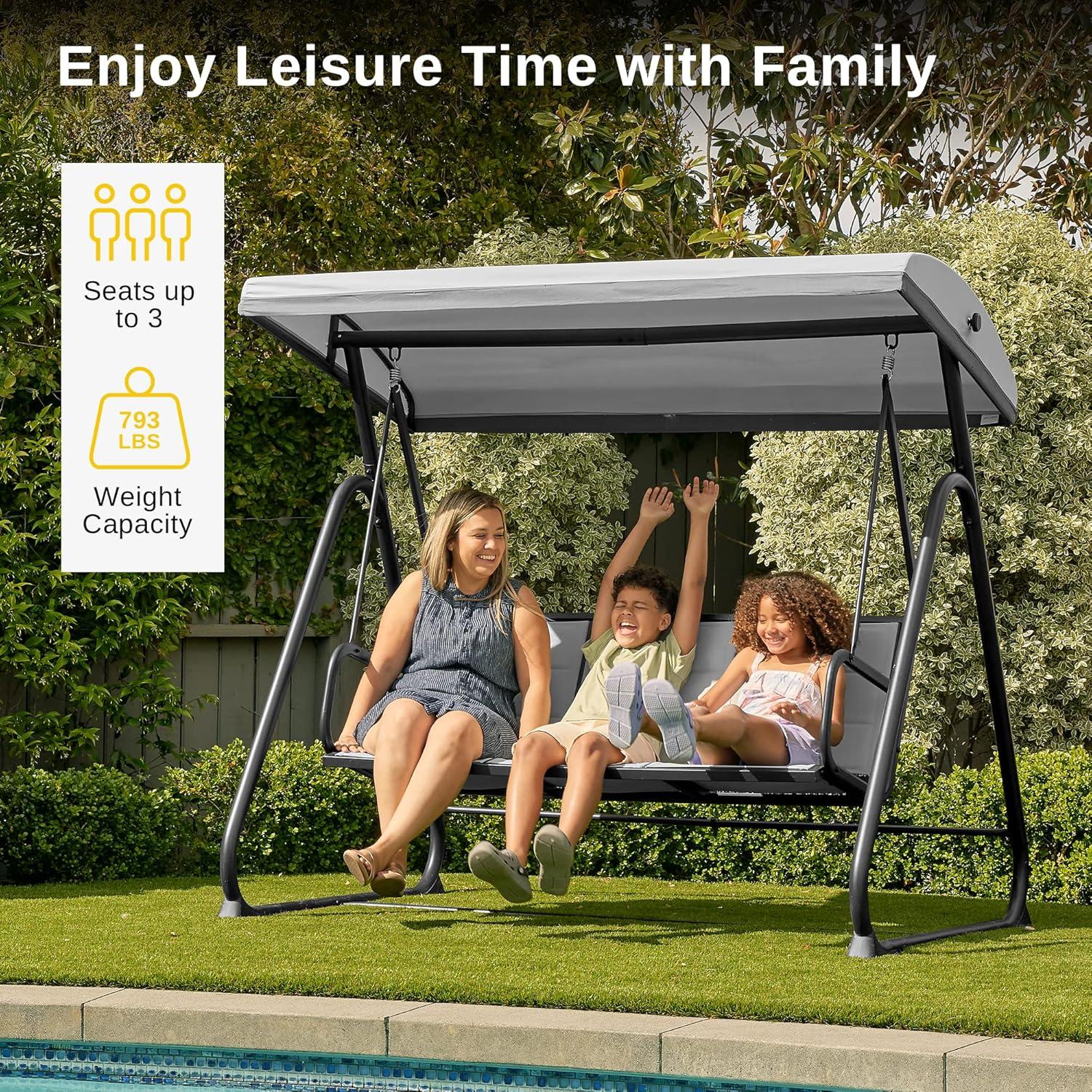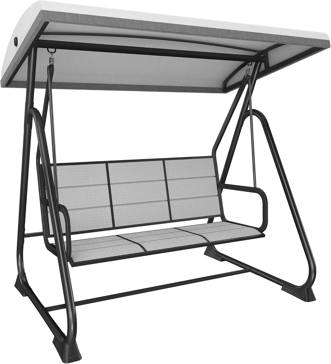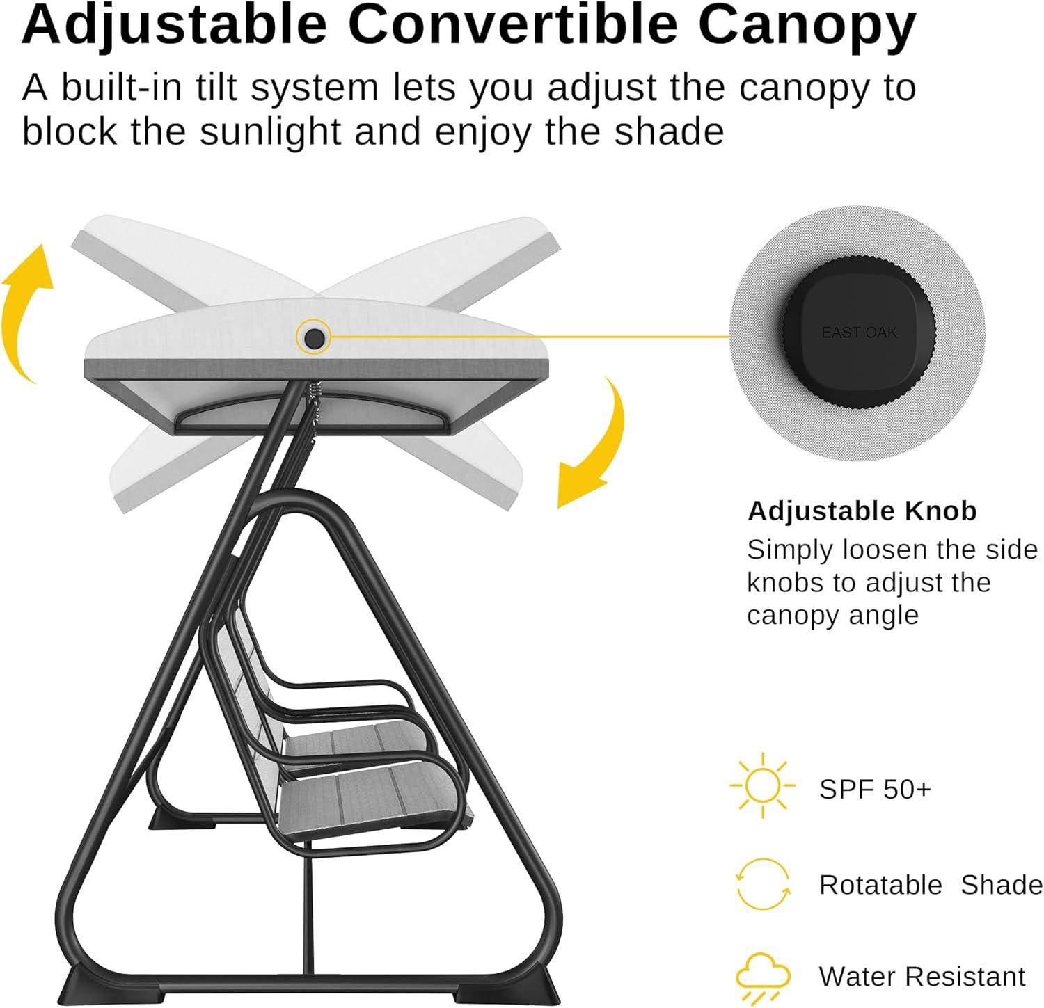 SPF 50+ Canopy: The swing canopy has PA coating with SPF 50+. The canopy offers water-resistant and UV-resistant shelter from rain and sunlight, so you stay comfortable no matter the season. The angle of this porch swing's canopy can be adjusted with a rotary knob to adapt to the position of the sun, providing maximum protection throughout the day