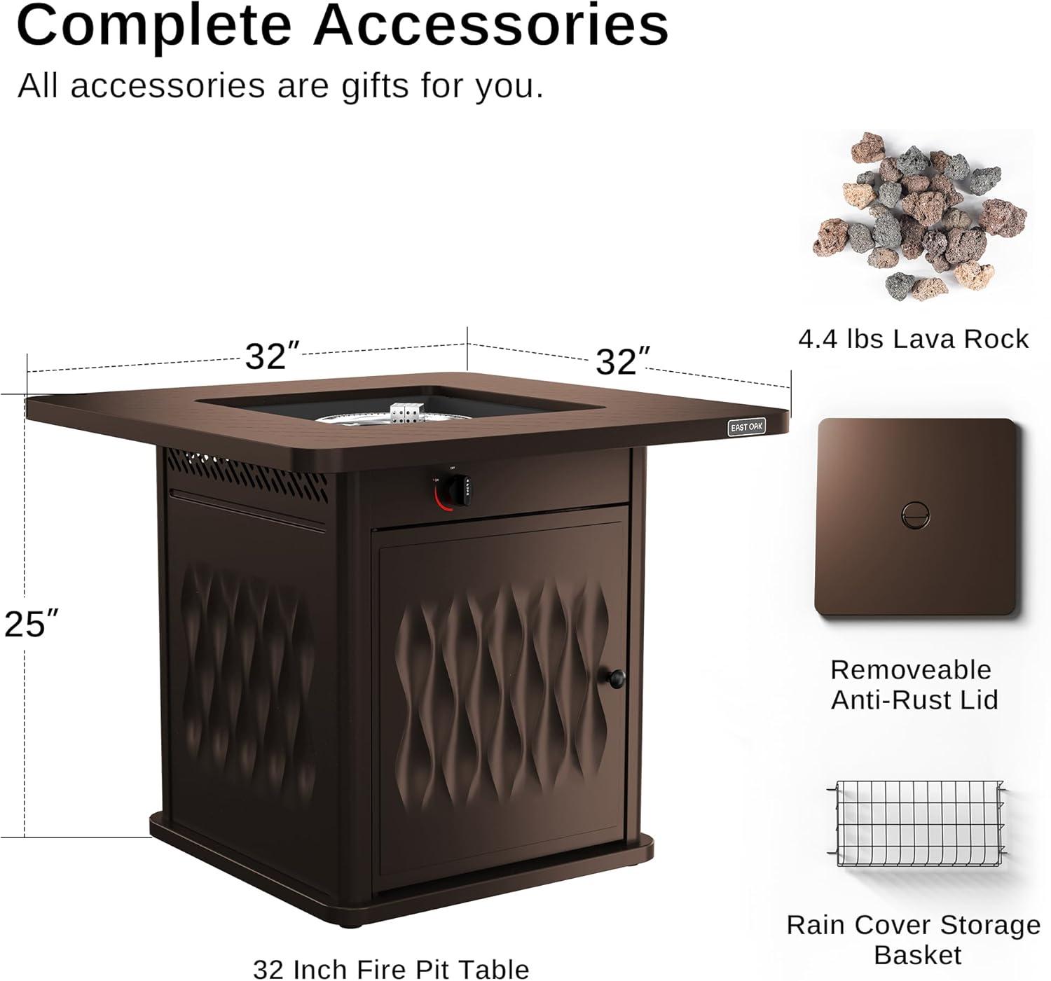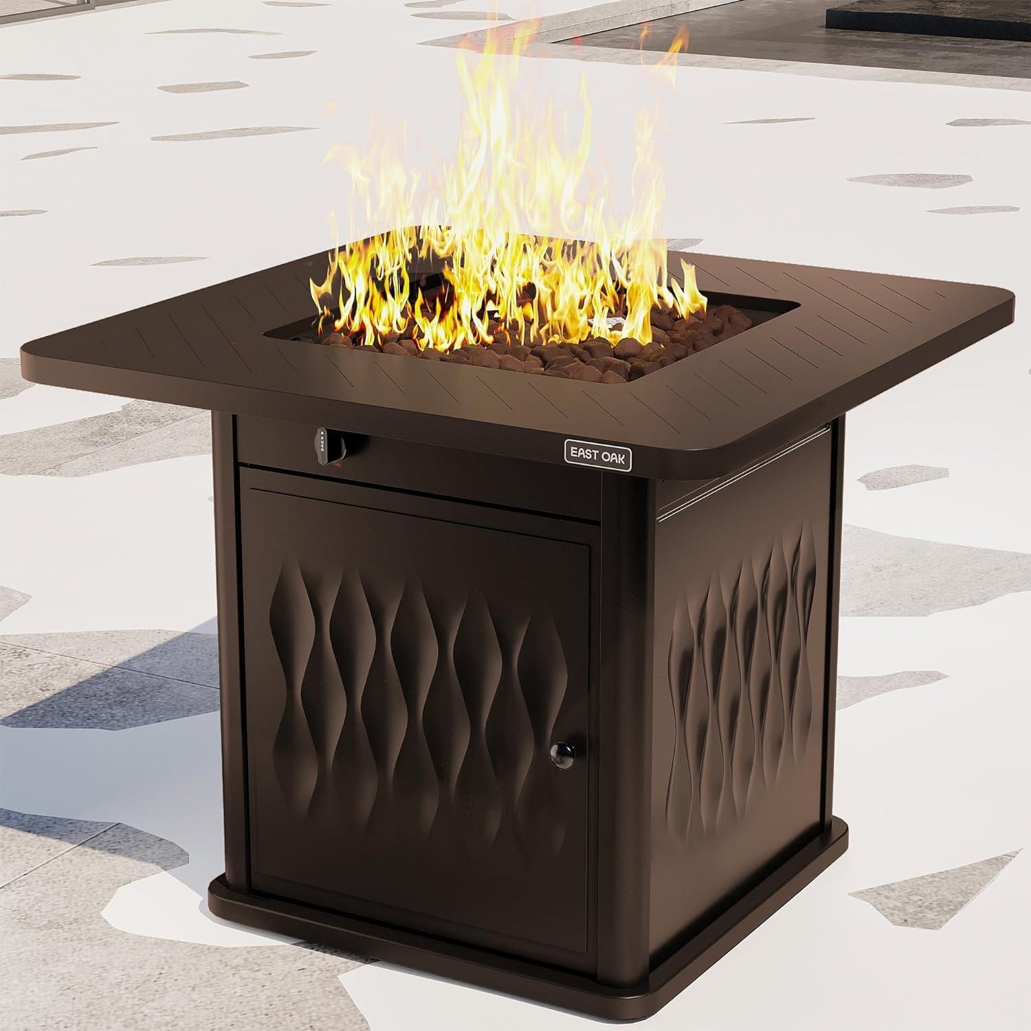 EAST OAK 32'' Propane Fire Pit Table, 50,000 BTU Steel Gas FirePit for Outdoor, Outside Patio Deck and Garden, CSA Certified Fire Table with Magnetic Lid, Cover-Storage Basket and Lava Rock , Black(Chocolate Coffee)