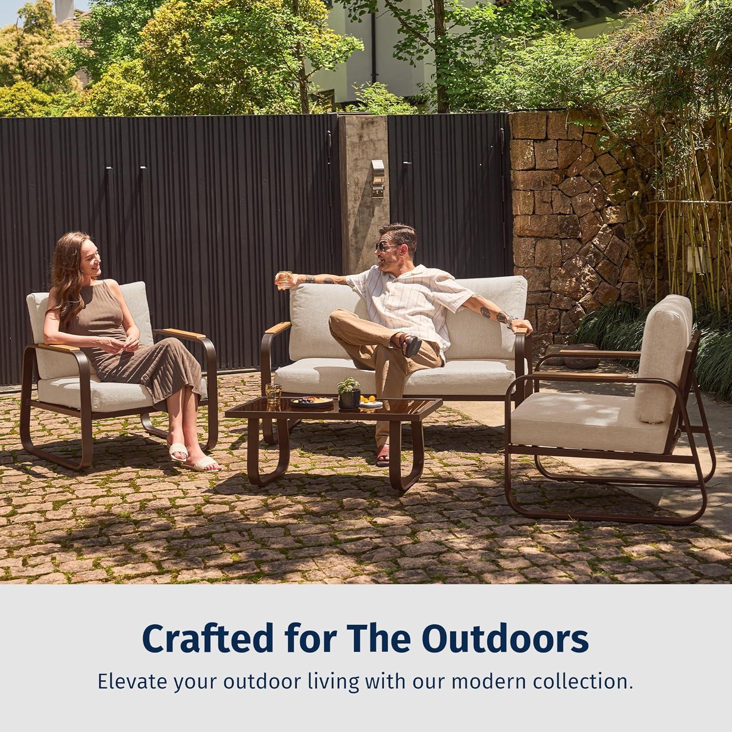 EAST OAK 4-Piece Patio Furniture Set, Outdoor Patio Set, 4.7inch Removable & Washable Deep Seating Cushion Outside Conversation Sets, Gray(Alexander-apricot)