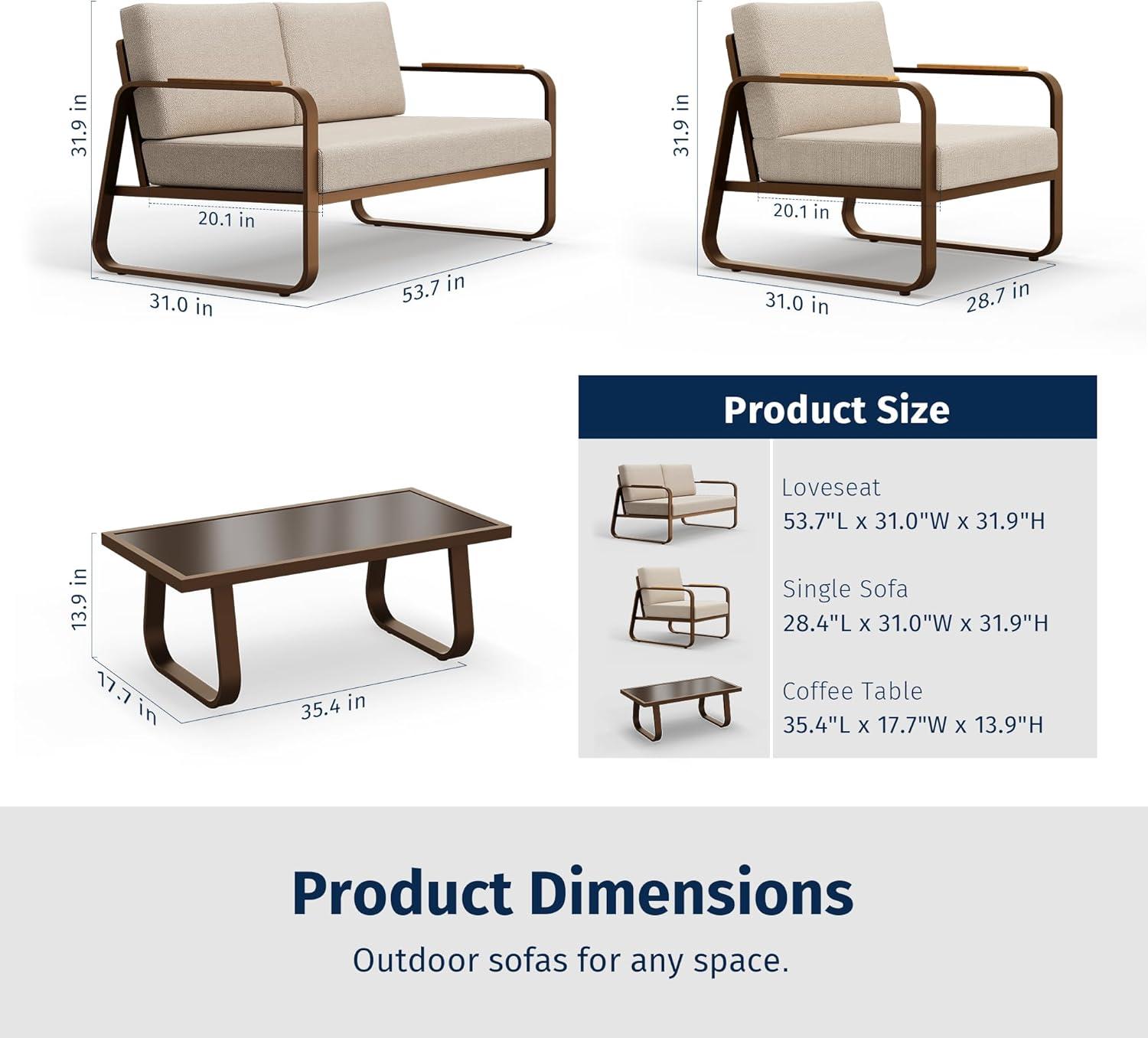 •    Note that the color of the patio furniture set may appear slightly different depending on the environment and lighting.