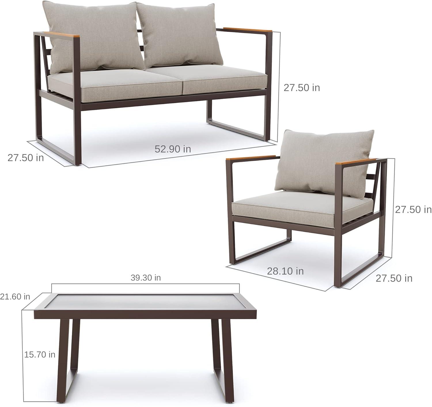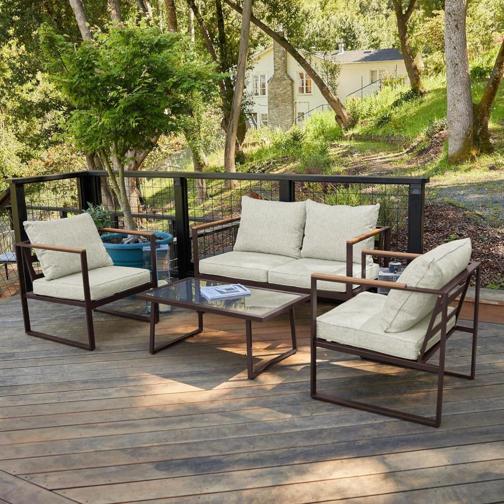 imageEAST OAK 4Piece Patio Furniture Set Outdoor Patio Set wRemovable ampamp Washable Deep Seating Cushion Outside Patio Conversation Sets for Backyard 25 Upgraded Black ampamp Misty GrayUpgraded Coffee  Beige