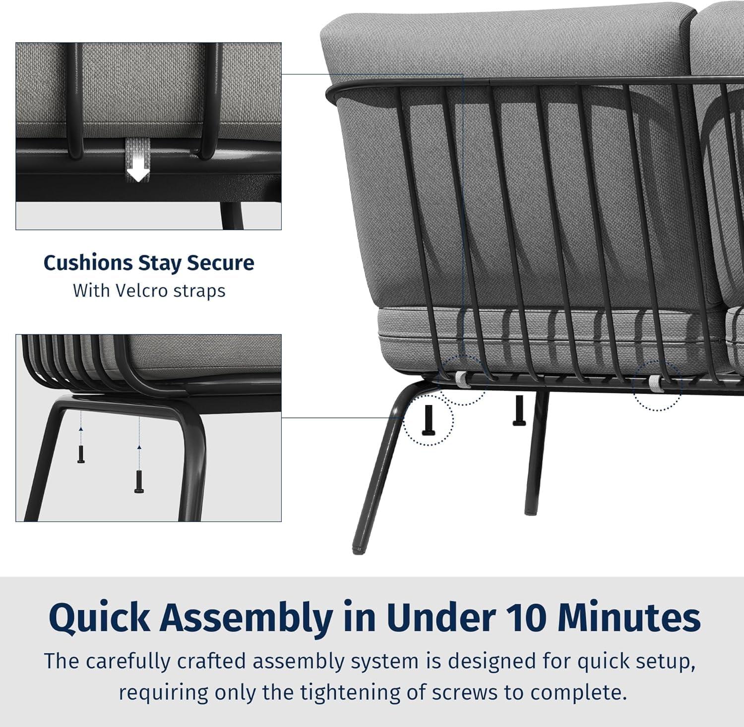 Effortless Assembly: With a simple assembly structure and clear instructions, transform your outdoor area in under 20 minutes. Adjustable footpads on the sofas and coffee table ensure stability, even on uneven surfaces, for hassle-free setup and enjoyment
