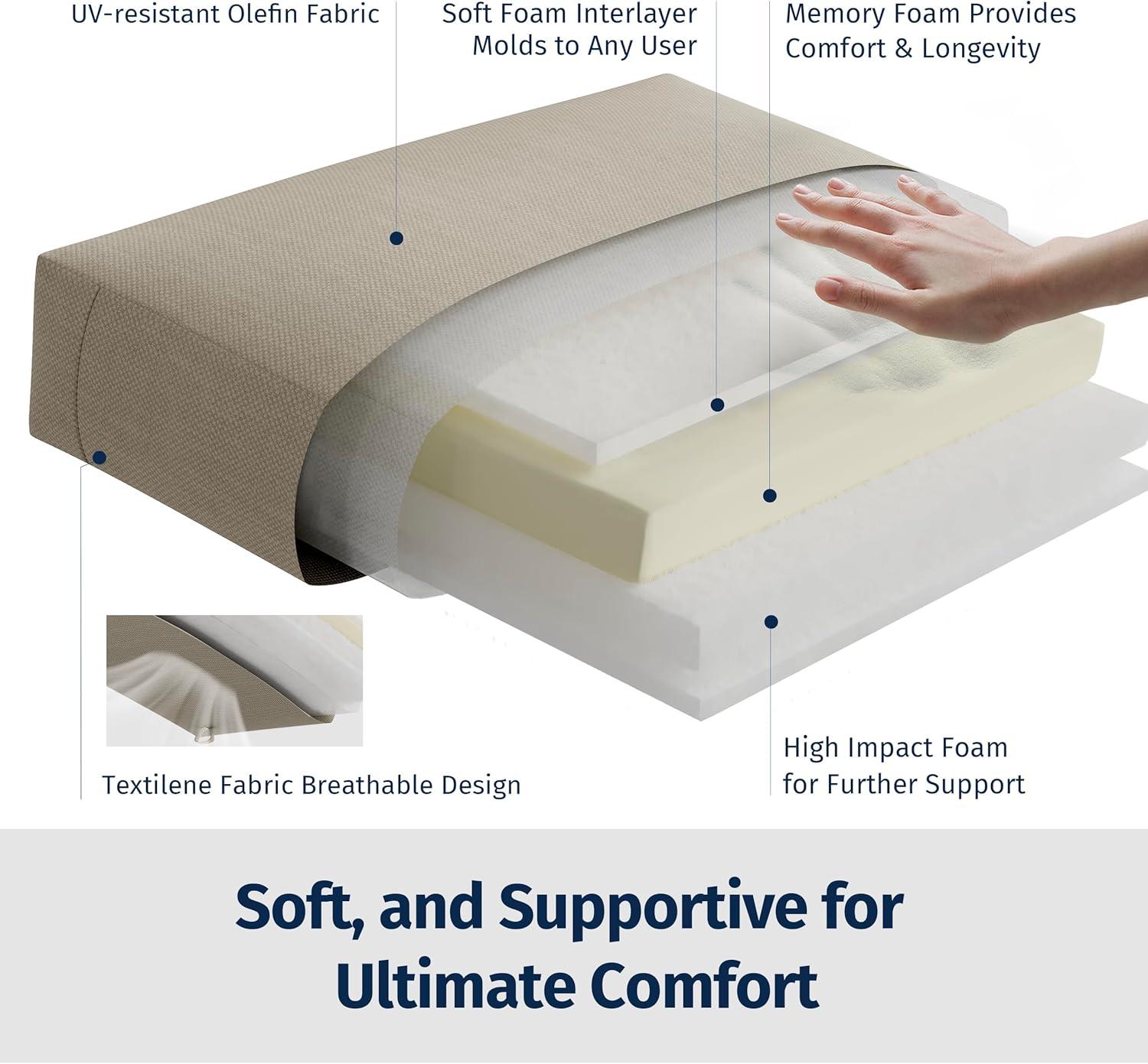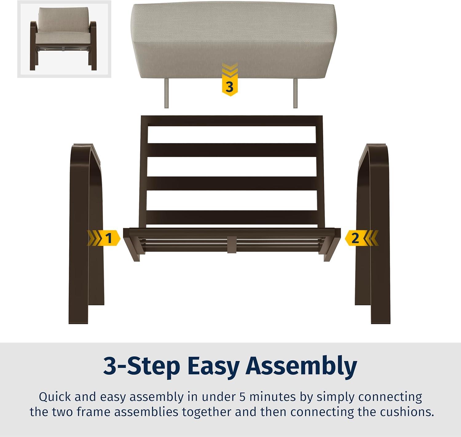 Upgraded Comfort: Designed for maximum comfort well into the evening, this patio furniture set features a high back and curved armrest. Its ergonomically designed 101° super-wide backrest and 2.3-inch wide armrest gently wrap around and support your body.