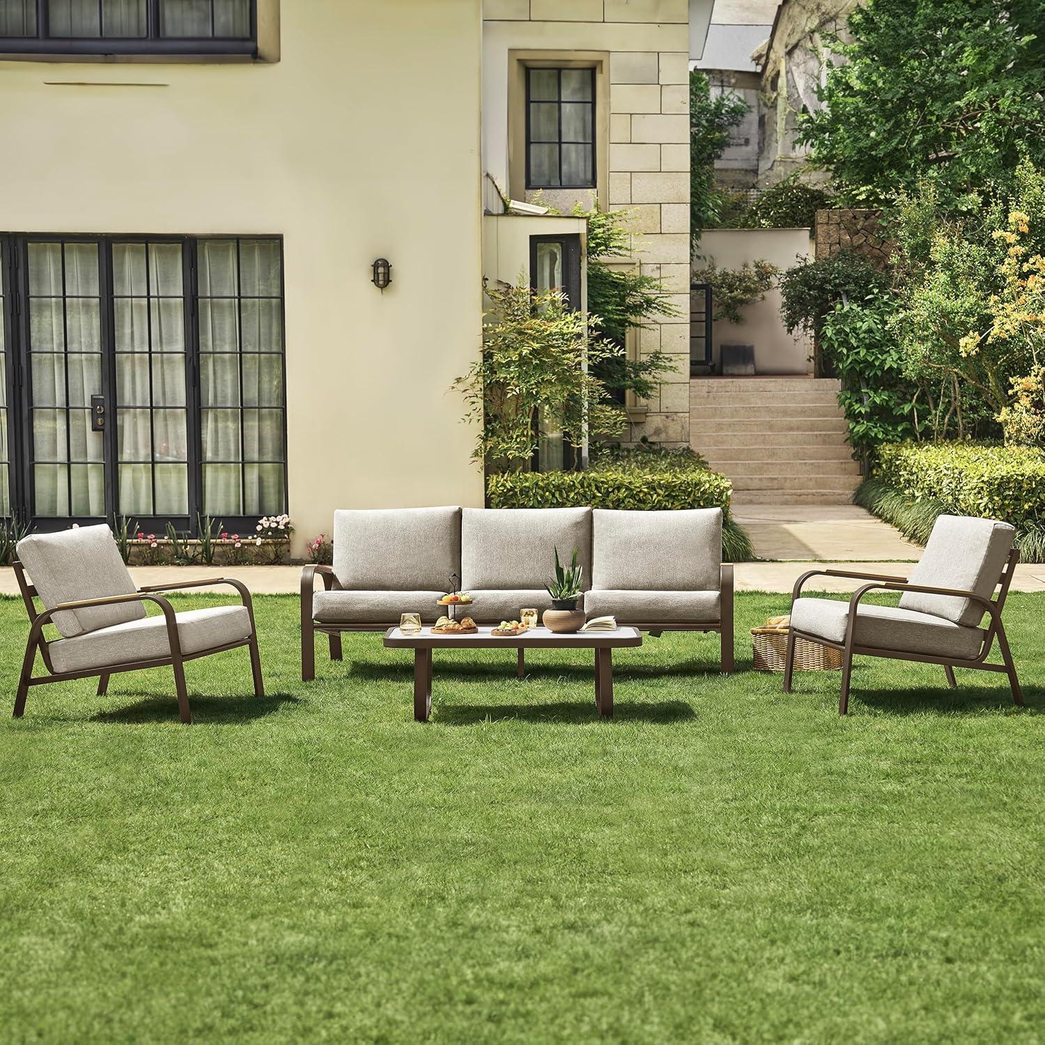 EAST OAK 5-Seat Patio Furniture Set, 4-Piece Outdoor Conversation Set with Coffee Table,Waterproof Outdoor Patio Furniture with Thick Cushions for Garden and Yard, Creamy Apricot(Grey)