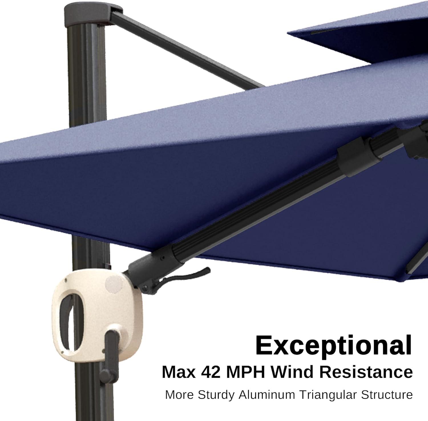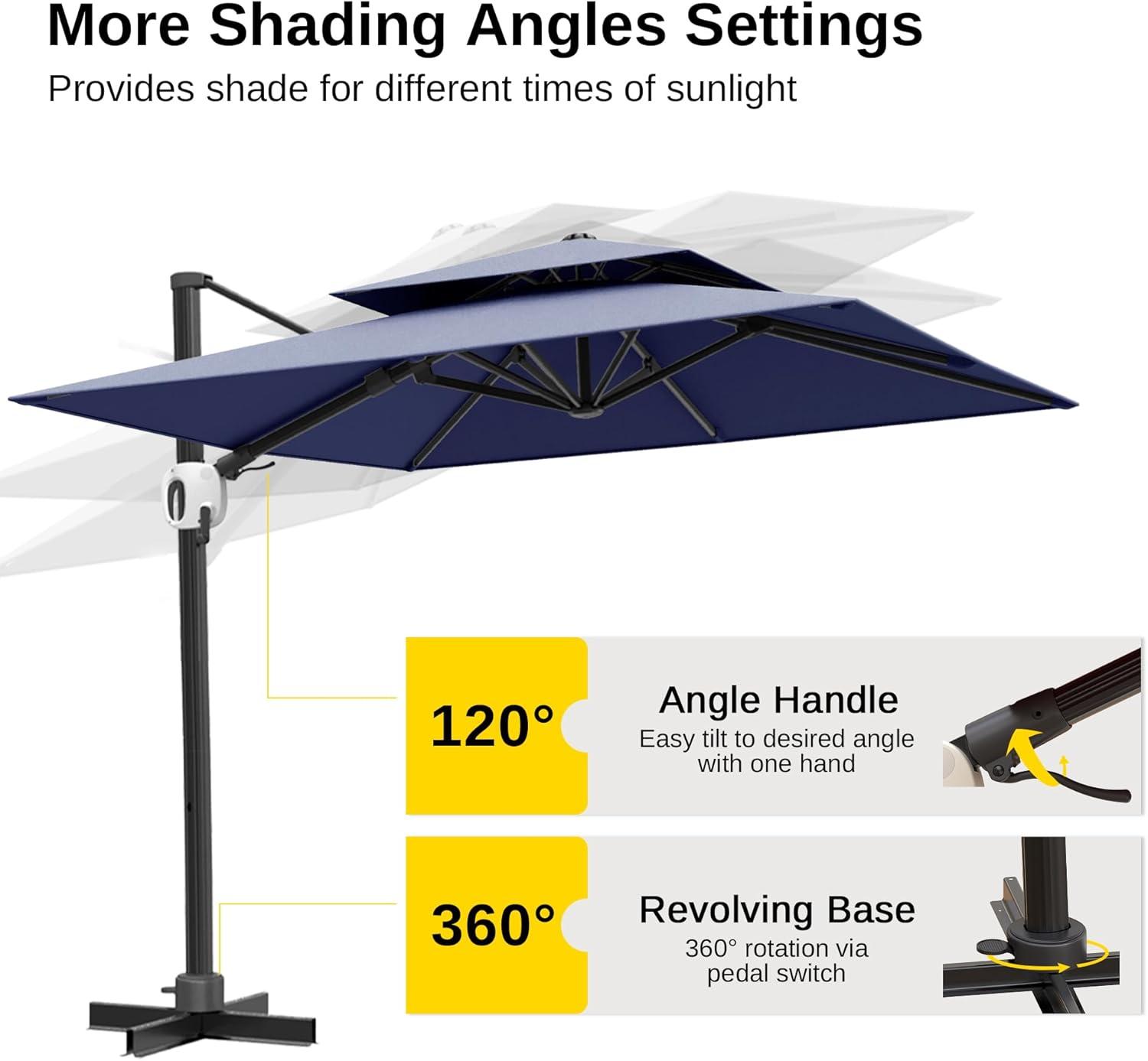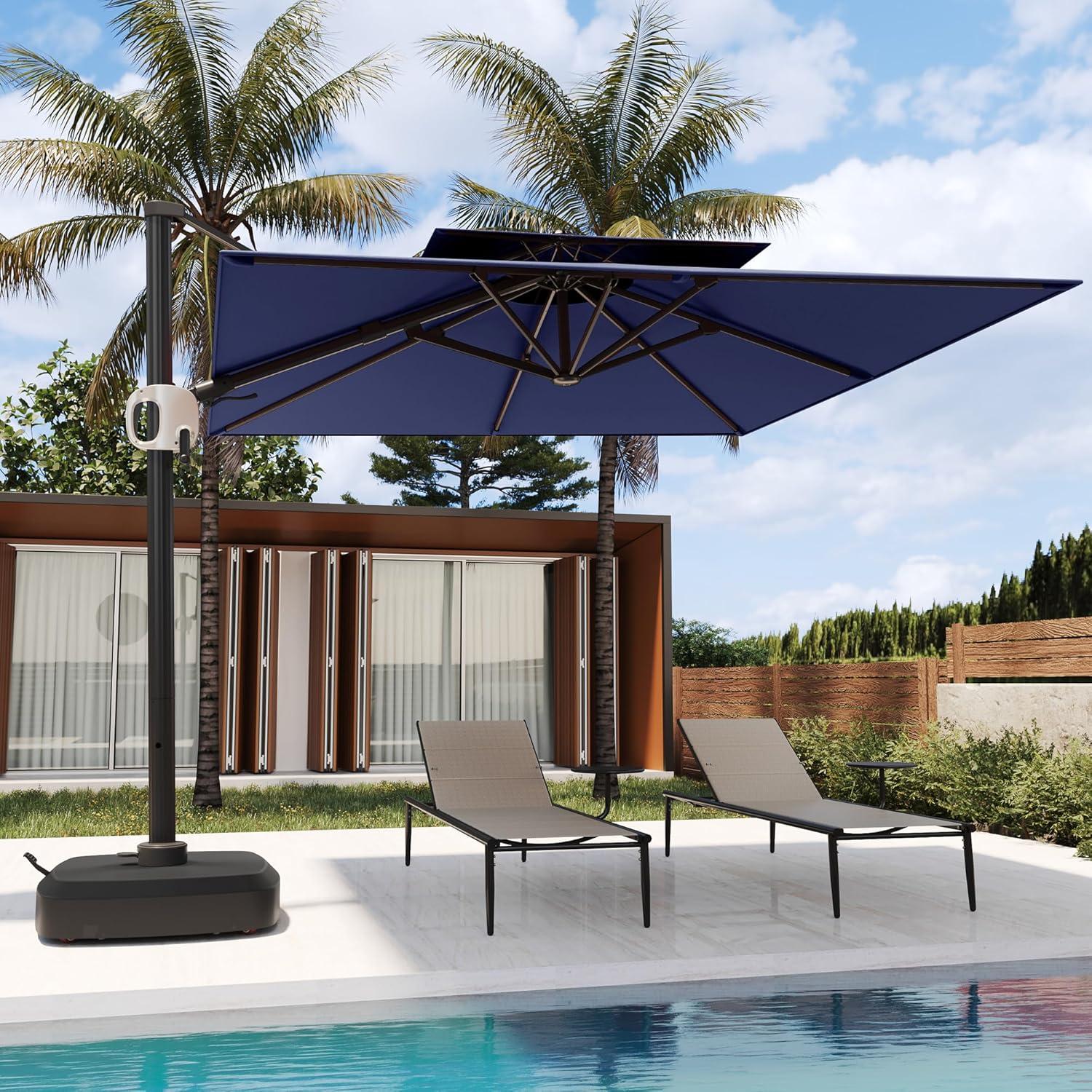 EAST OAK and Flame&Shade Patio Umbrella, 10ft Square Outdoor Umbrella, Large Offset Cantilever Umbrella with 360° Rotation, Heavy Duty Windproof and UV Resistant Double Top Umbrella for Pool and Deck, Night Blue(Night Blue)