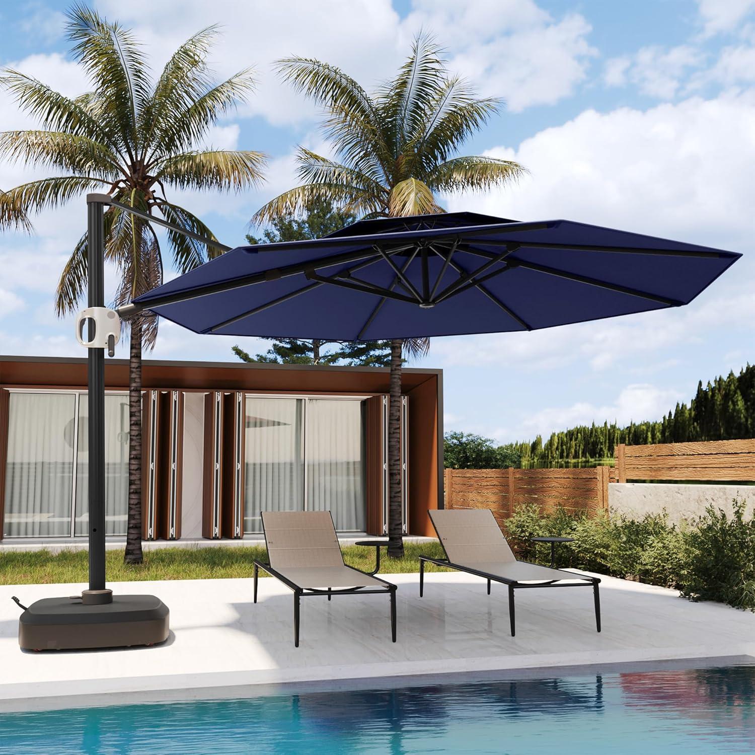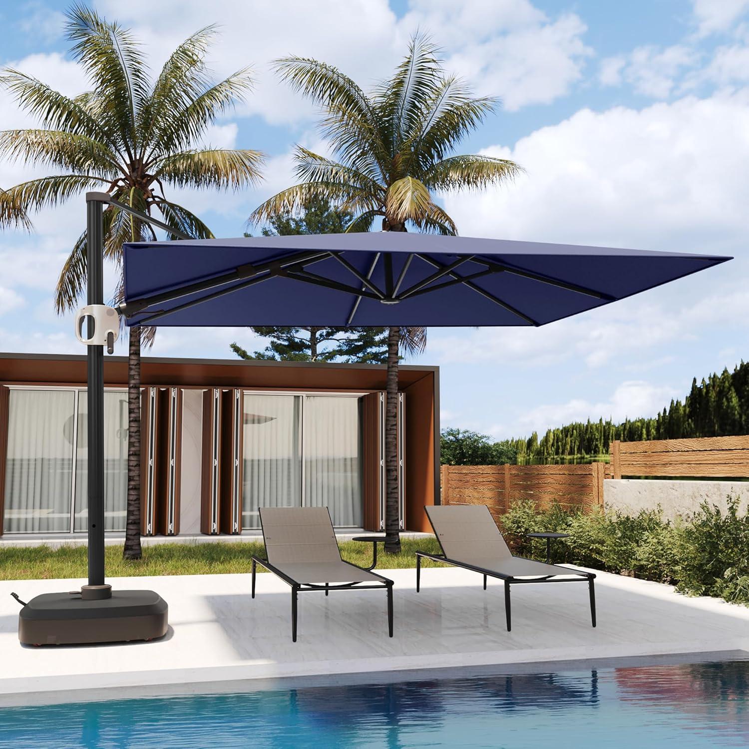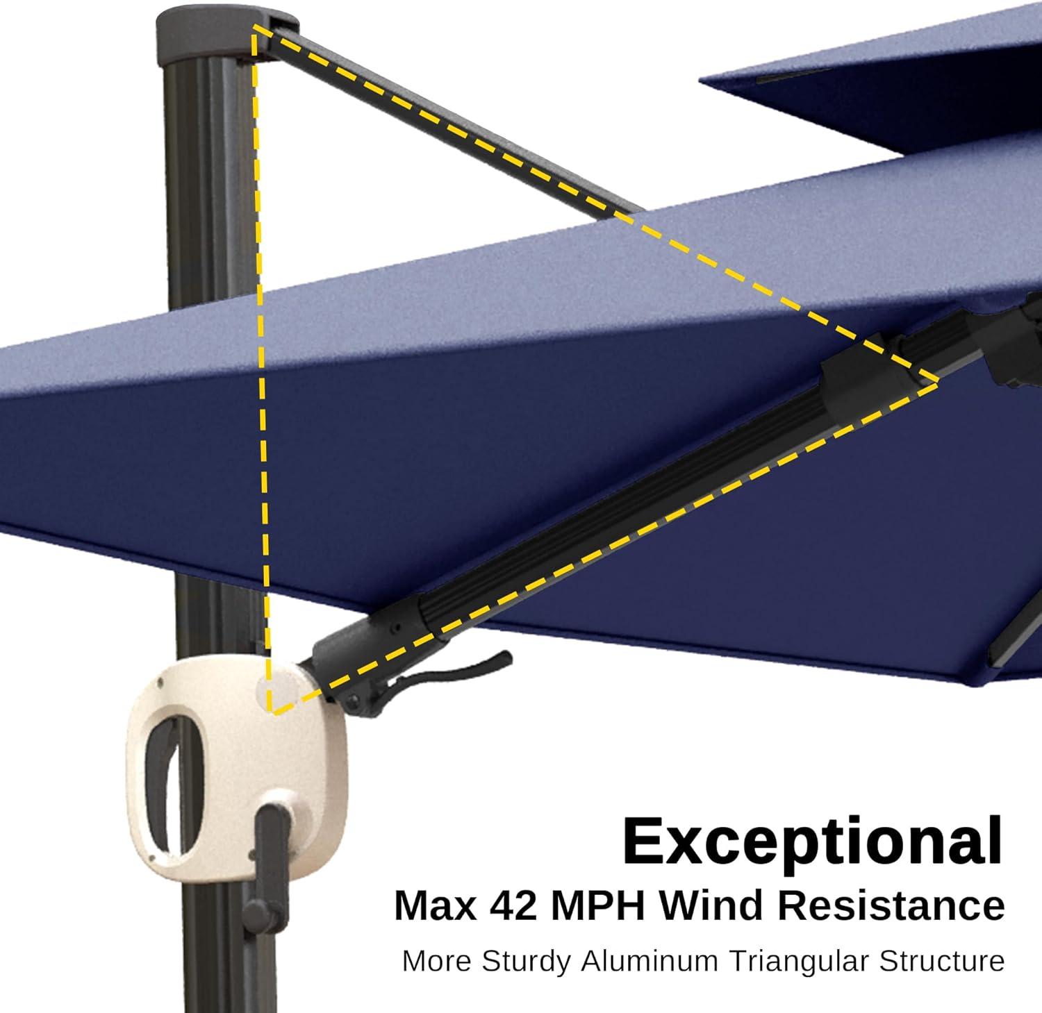 EAST OAK and Flame&Shade Patio Umbrella, 10ft Square Outdoor Umbrella, Large Offset Cantilever Umbrella with 360° Rotation, Heavy Duty Windproof and UV Resistant Double Top Umbrella for Pool and Deck, Night Blue(Night Blue)