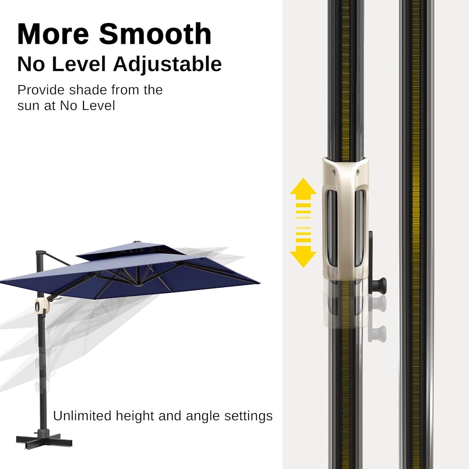 EAST OAK and Flame&Shade Patio Umbrella, 10ft Square Outdoor Umbrella, Large Offset Cantilever Umbrella with 360° Rotation, Heavy Duty Windproof and UV Resistant Double Top Umbrella for Pool and Deck, Night Blue(Tan)