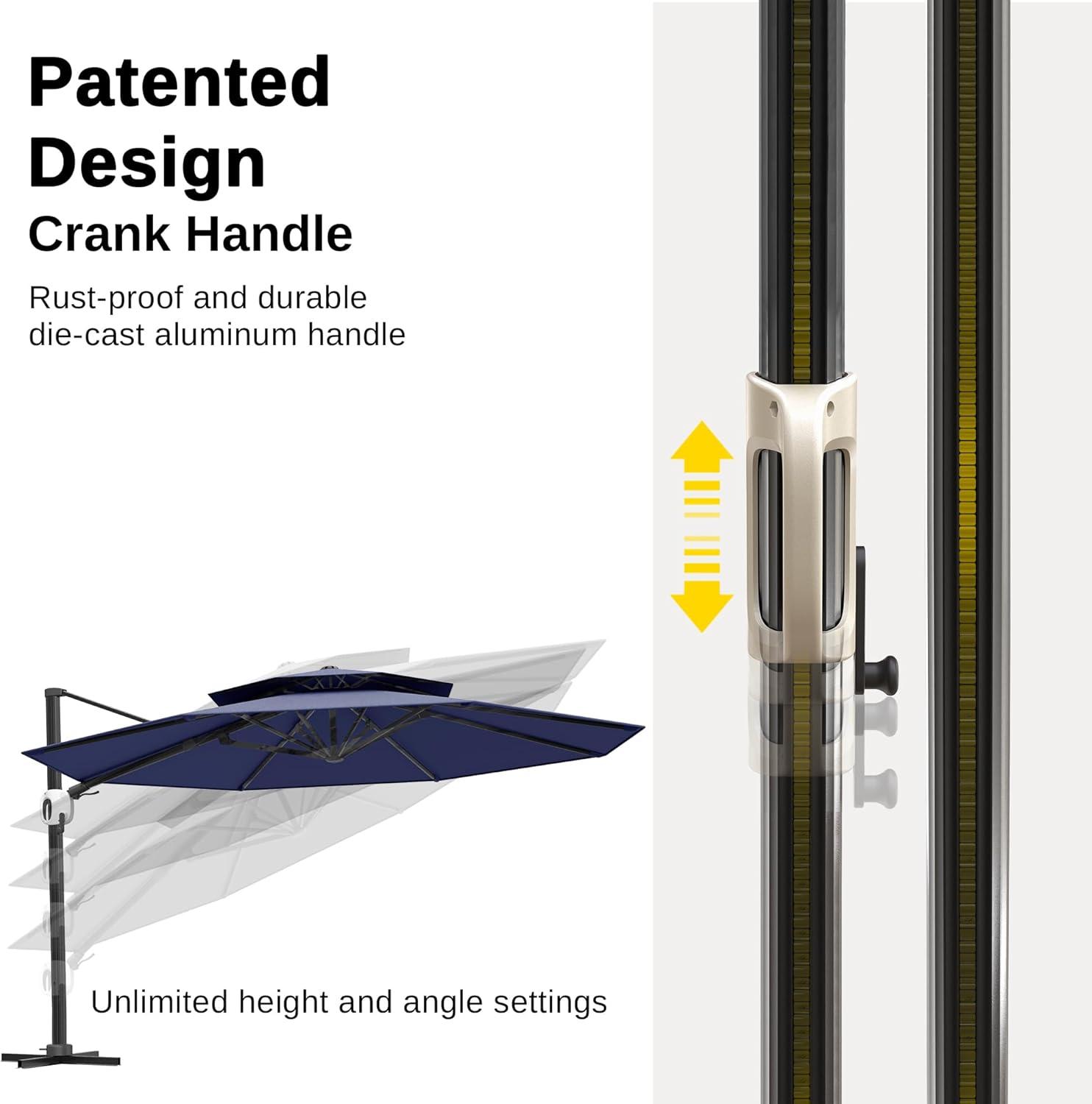 𝗦𝗺𝗼𝗼𝘁𝗵 𝗖𝗼𝗹𝗹𝗲𝗰𝘁𝗶𝗼𝗻 𝗨𝗺𝗯𝗿𝗲𝗹𝗹𝗮 𝗘𝘅𝗽𝗲𝗿𝗶𝗲𝗻𝗰𝗲: Fully an upgraded super large aluminum alloy handlebar system with a patented design. Thicker and more durable, it's now easier to open and close the cantilever patio umbrella in just a few seconds