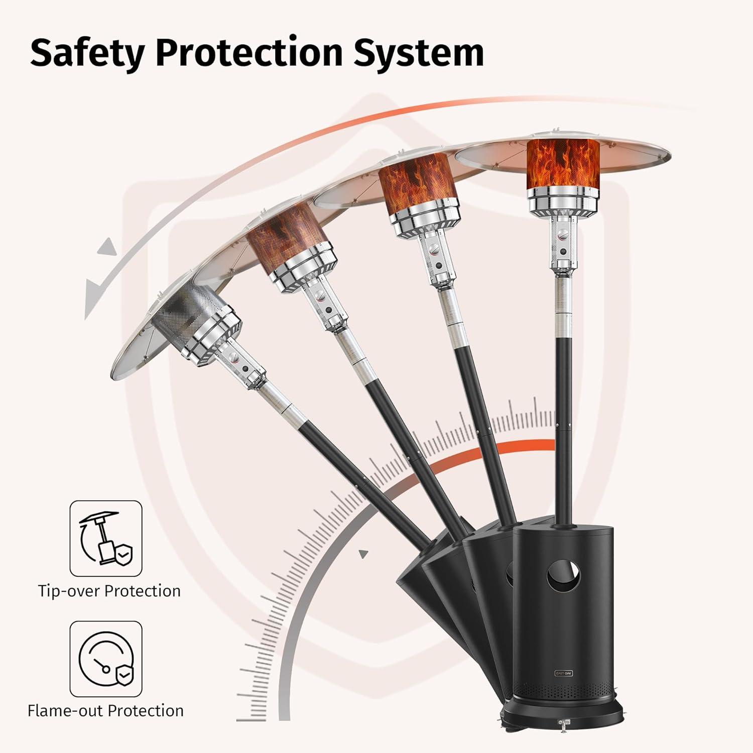 𝗣𝗼𝘄𝗲𝗿𝗳𝘂𝗹 𝟱𝟬,𝟬𝟬𝟬 𝗕𝗧𝗨 𝗛𝗲𝗮𝘁: Our outdoor patio heater delivers 50,000 BTU of power to spread heat up to an 20-foot diameter from its central heating position. With ETL certification, it is ideal for outdoor and commercial use and can be placed on an outdoor balcony, garden, swimming pool, etc