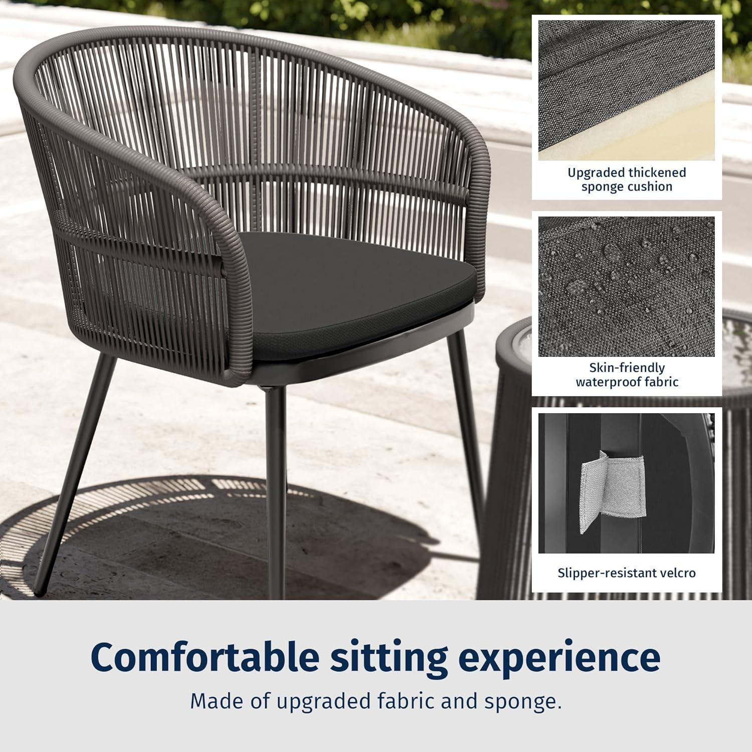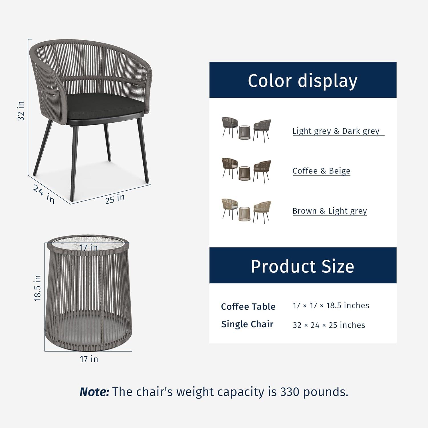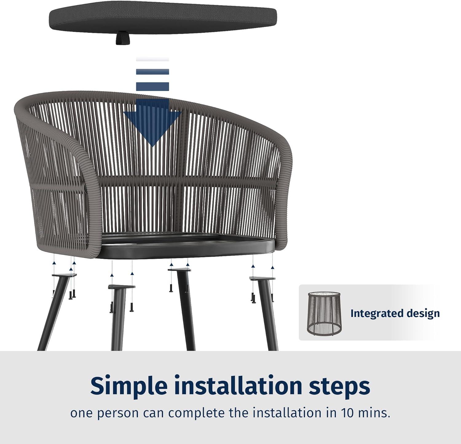 𝗘𝘅𝗰𝗲𝗹𝗹𝗲𝗻𝘁 𝗦𝘁𝘂𝗿𝗱𝘆 & 𝗗𝘂𝗿𝗮𝗯𝗶𝗹𝗶𝘁𝘆: Made of a weather-resistant, sturdy electrophoretic steel frame, 304 stainless steel screws, and durable handcrafted wicker. Designed to stand the test of time and high temperature, providing great support and balance for our patio conversation set. Holds up to 330 lbs