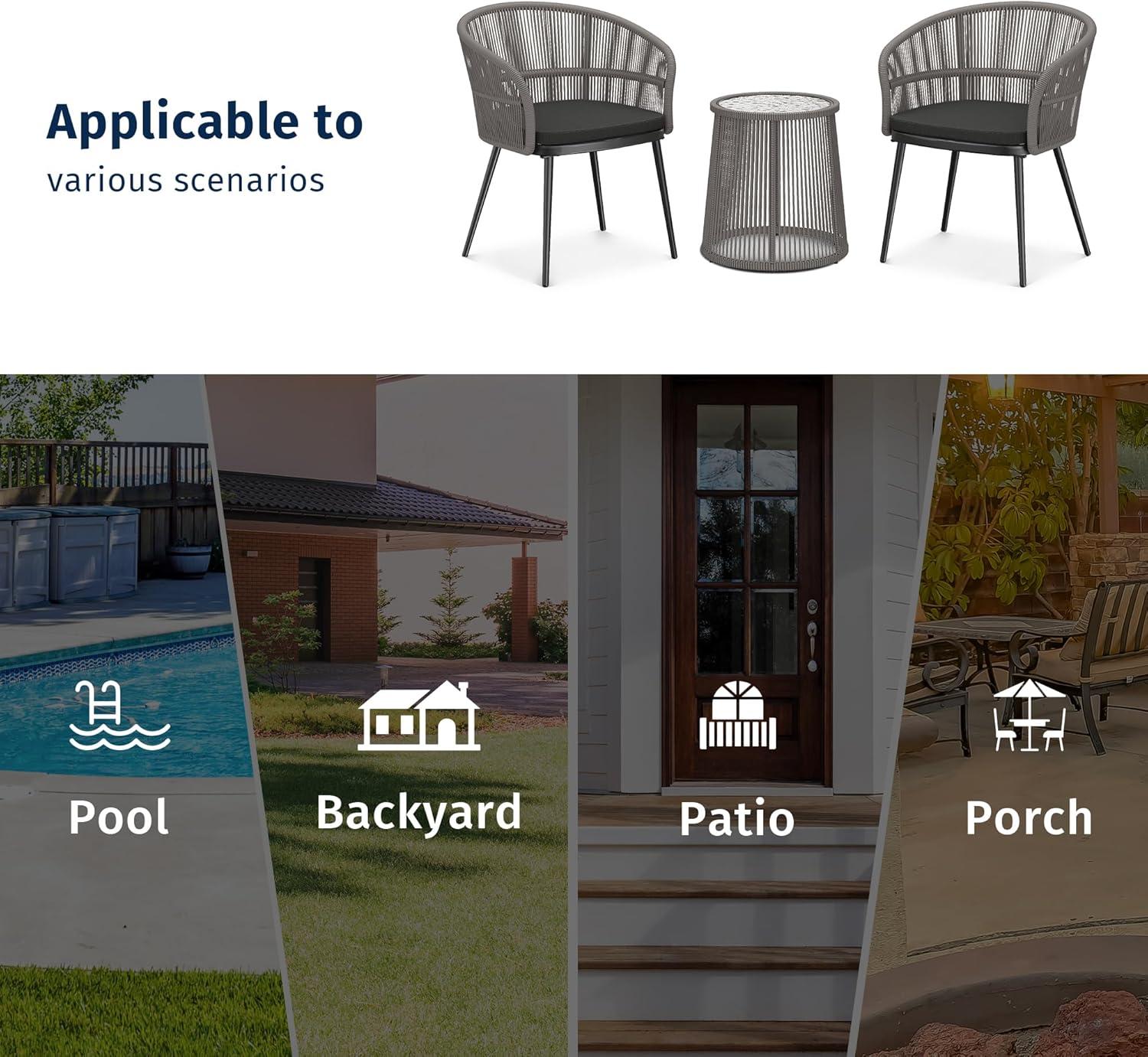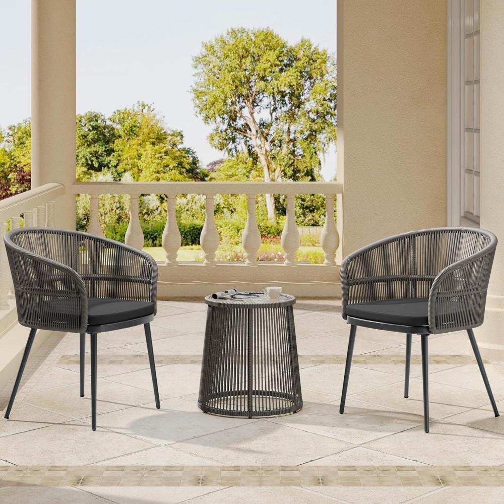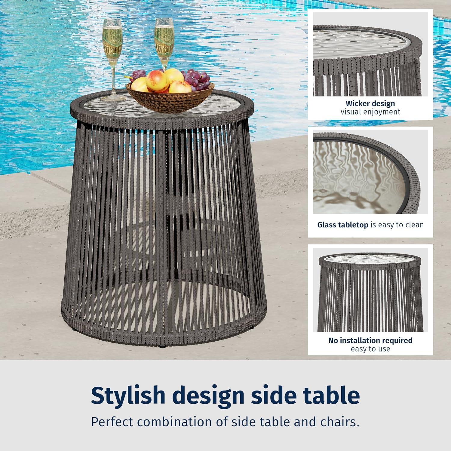 𝗠𝗼𝗱𝗲𝗿𝗻 𝗕𝗼𝗵𝗼 𝗖𝗵𝗶𝗰 𝗗𝗲𝘀𝗶𝗴𝗻: Make your friends envious with this 3-piece handwoven wicker patio bistro set. You'll get 2 armchairs and 1 side table with a textured glass top. The table can also be used to put fruit plates or the ornaments such as small flower pots when you are reading or chatting with your friends. Plus, its tempered glass top makes it easy to clean