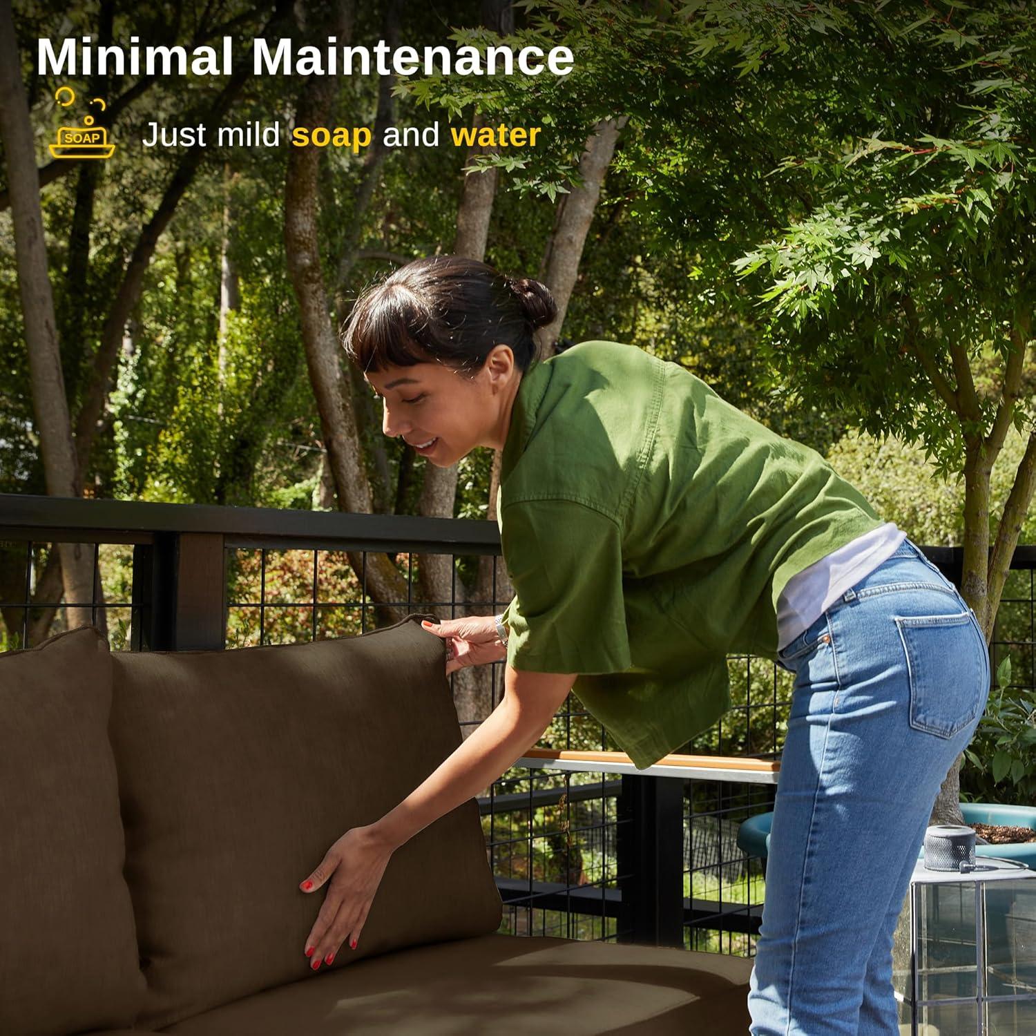 EASY TO MAINTAIN: No need to worry about any accidental spills; our PU-coated cushion covers are water-resistant. Made of high-quality 300g/㎡ fabric, the zippered cover is UV resistant, fade-resistant, and abrasion-resistant; plus, it is removable and machine washable