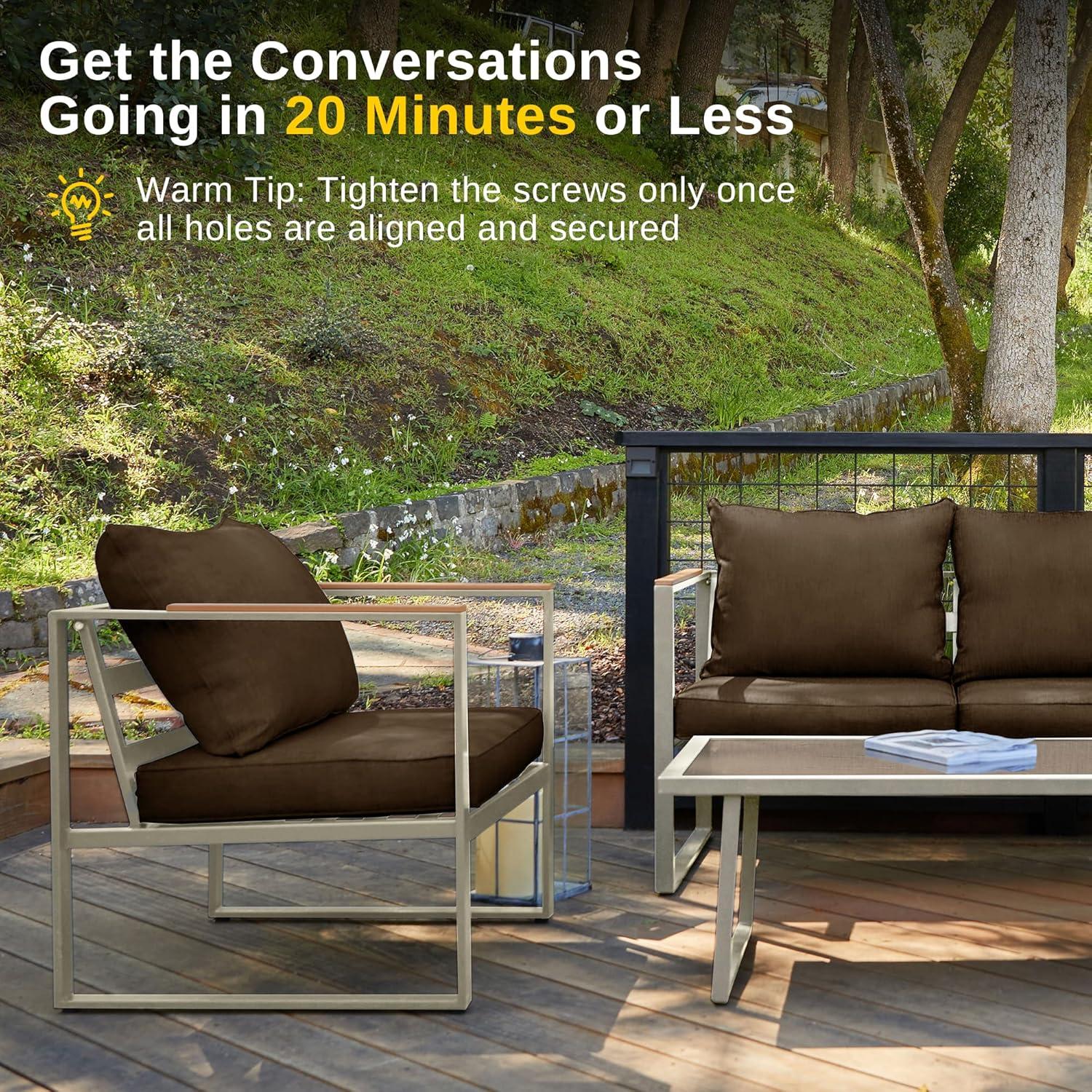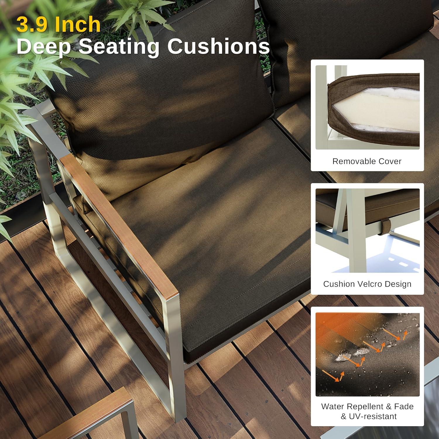 imageEAST OAK Courtyard Patio Furniture Set 4Piece Outdoor Patio Set with Sofa Removable ampamp Washable Deep Seating Cushion Tempered Glass Table Outside Patio Conversation Sets Black ampamp GreyCourtyardchampagne Gold  Chestnut Brown