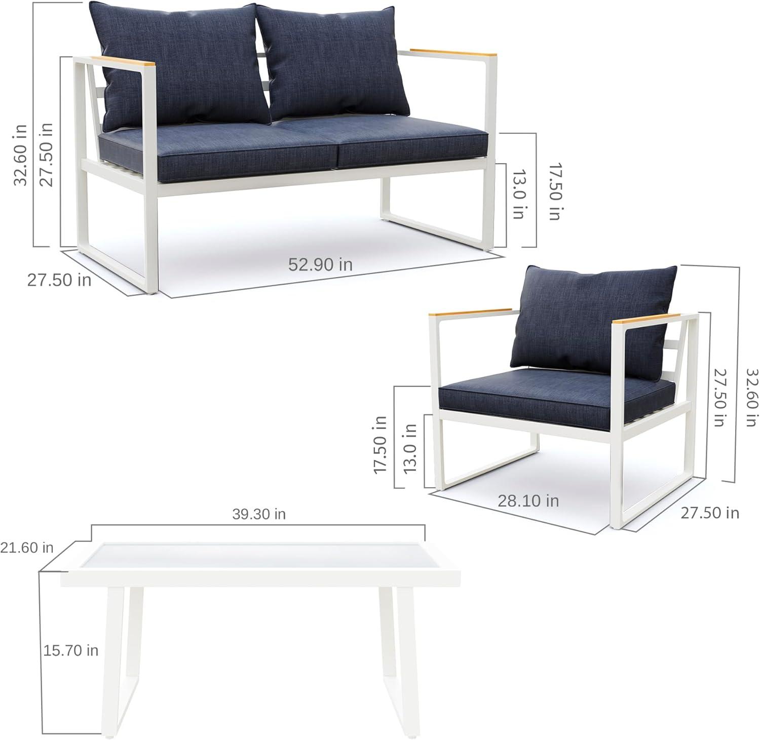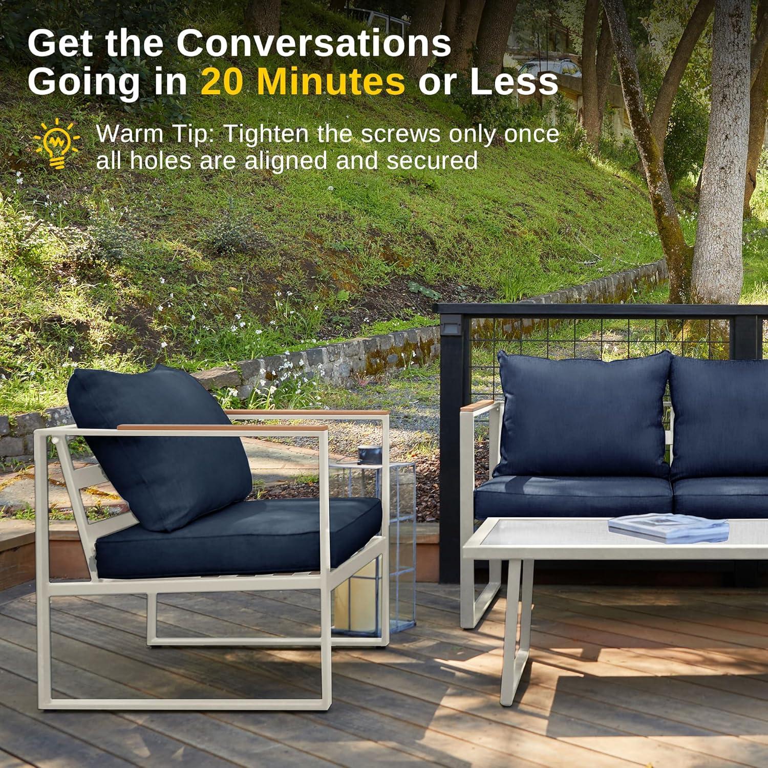 imageEAST OAK Courtyard Patio Furniture Set 4Piece Outdoor Patio Set with Sofa Removable ampamp Washable Deep Seating Cushion Tempered Glass Table Outside Patio Conversation Sets Black ampamp GreyCourtyardivory White  Navy Blue