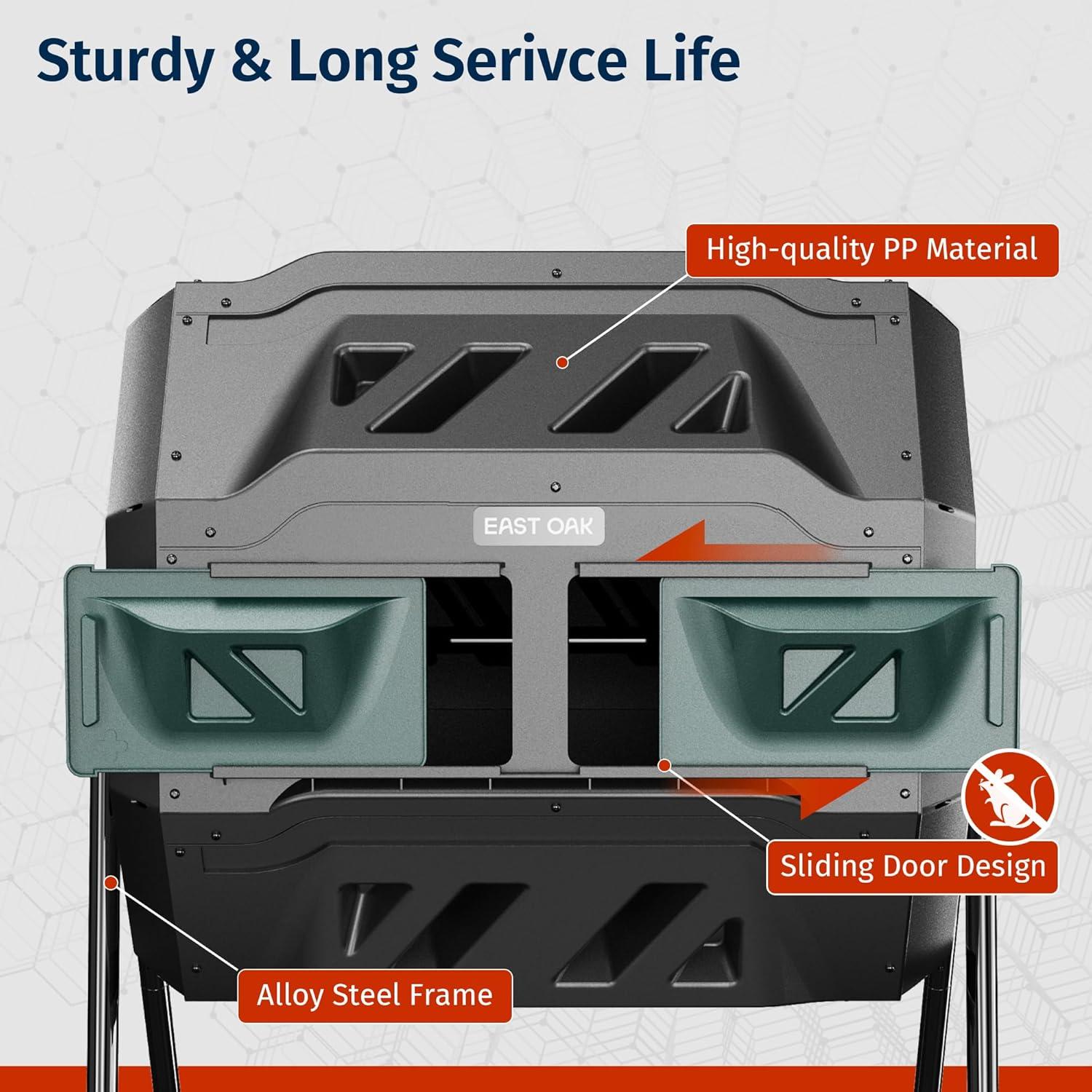 EAST OAK Dual Chamber Outdoor Compost Tumbler, 2 × 18.5 Gallon Compost Bin, Rotating Composter with Aeration and Locking System for Garden, Kitchen, Yard(43 Gallon)