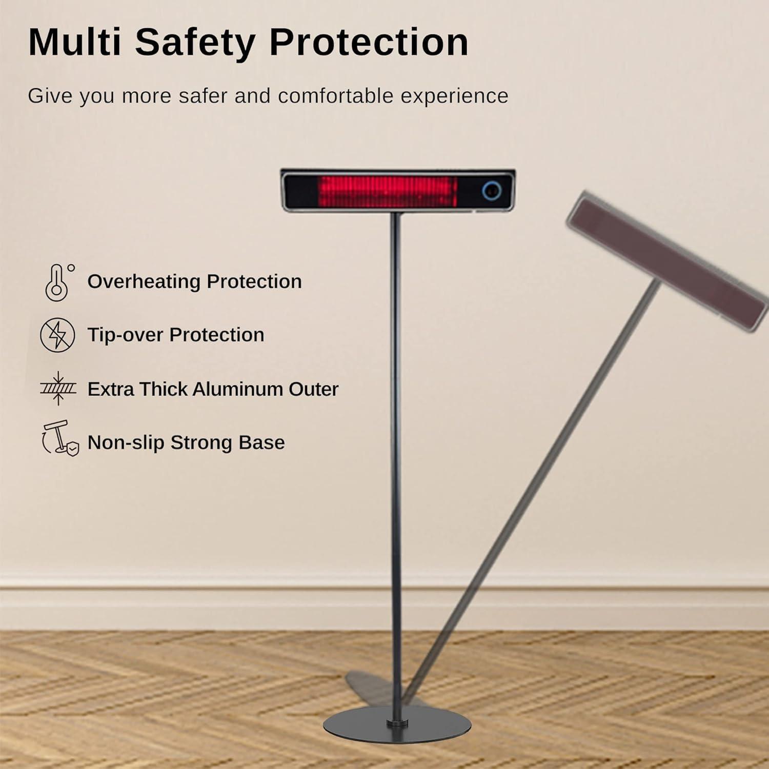 EAST OAK Electric Heater, Standing Indoor Outdoor Heaters for Patio with Nanocrystal Glass-ceramic 1500W, Fast Heat Waterproof & Dustproof, 3 Heat Settings & 24h Timer, Tip-over & Overheat Protection(Patio Heaters-2024)