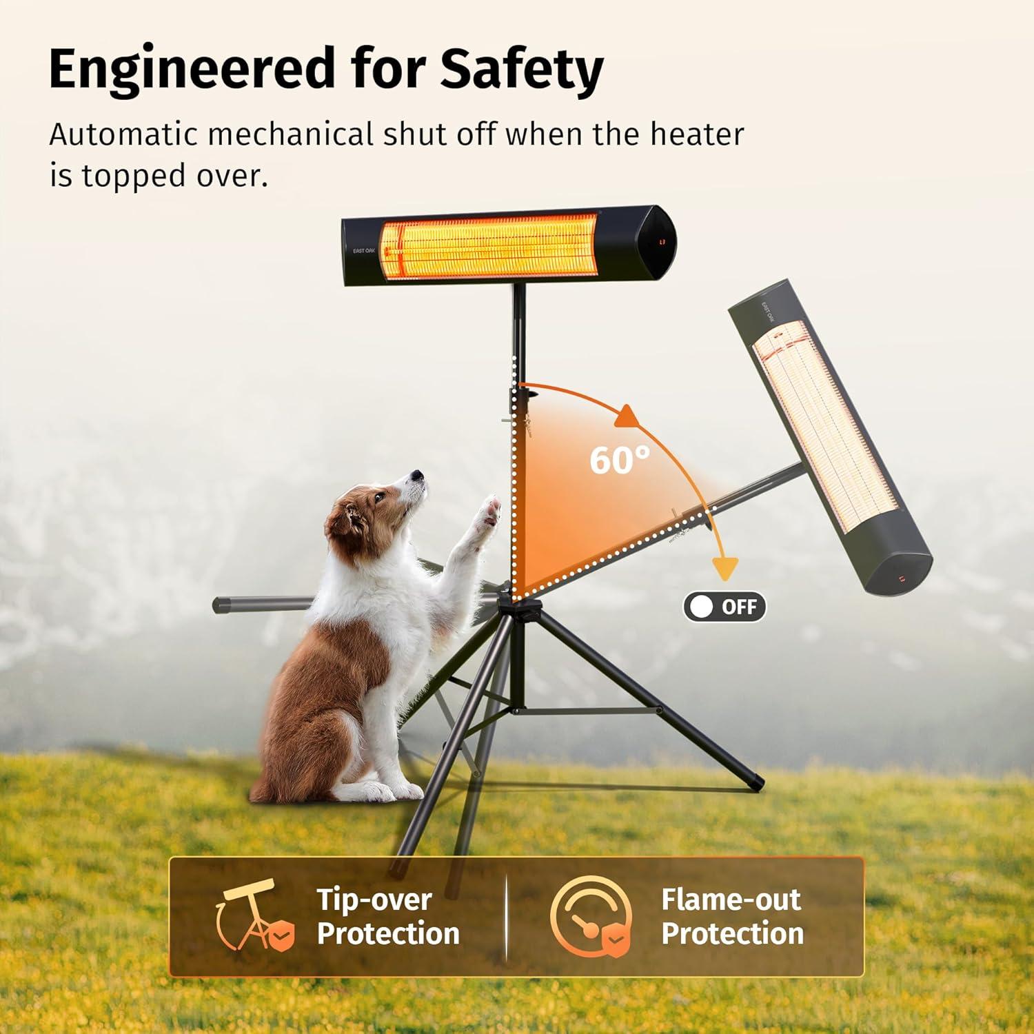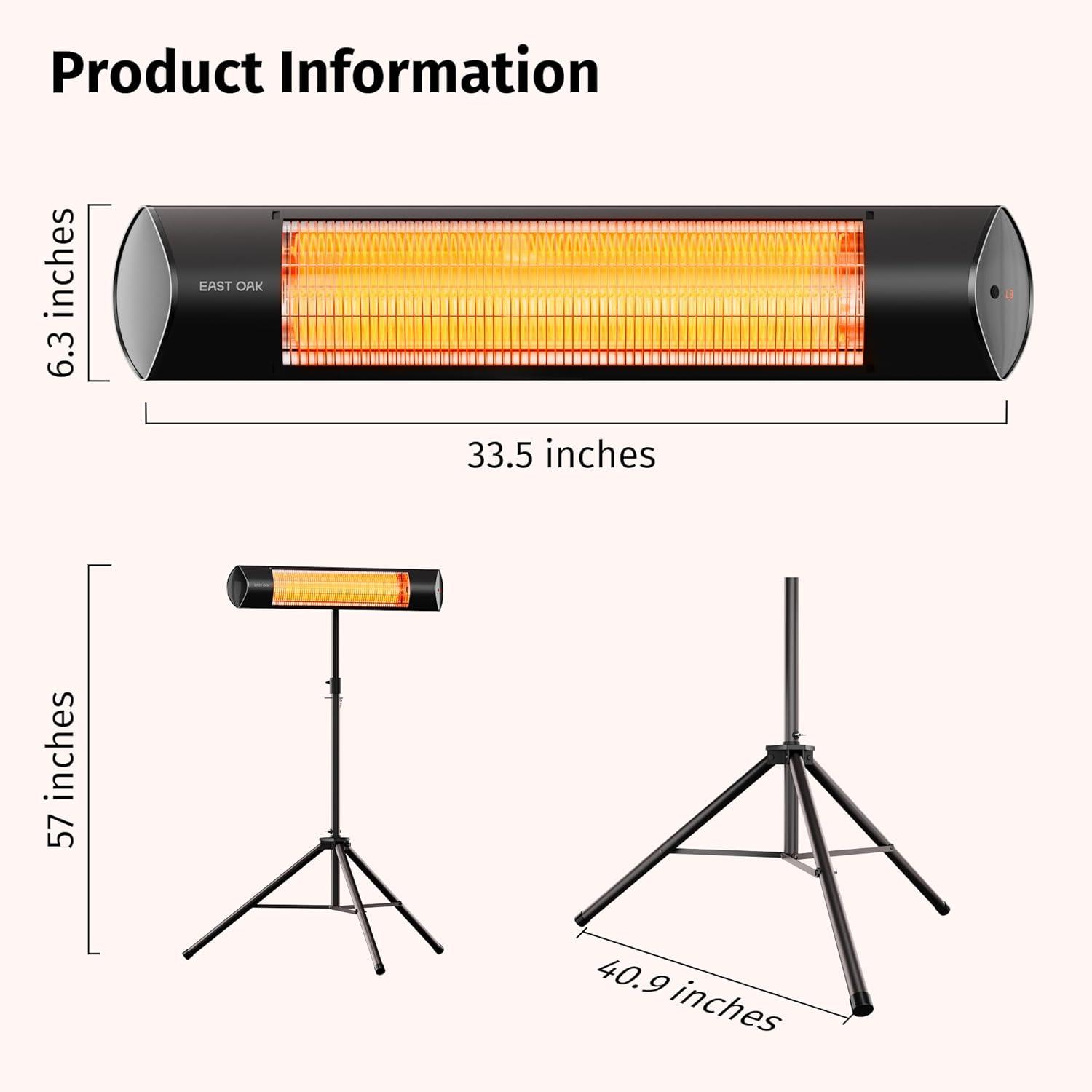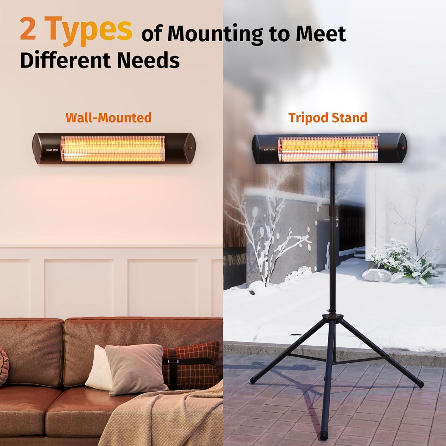 EAST OAK Electric Outdoor Indoor Heater, 1500W Patio Infrared Heater with Adjustable Standing, IP55 Waterproof Wall Mounted with 3 Heat Levels and Tip-over & Overheating Protection, 2024 Upgrade(Black-2024)