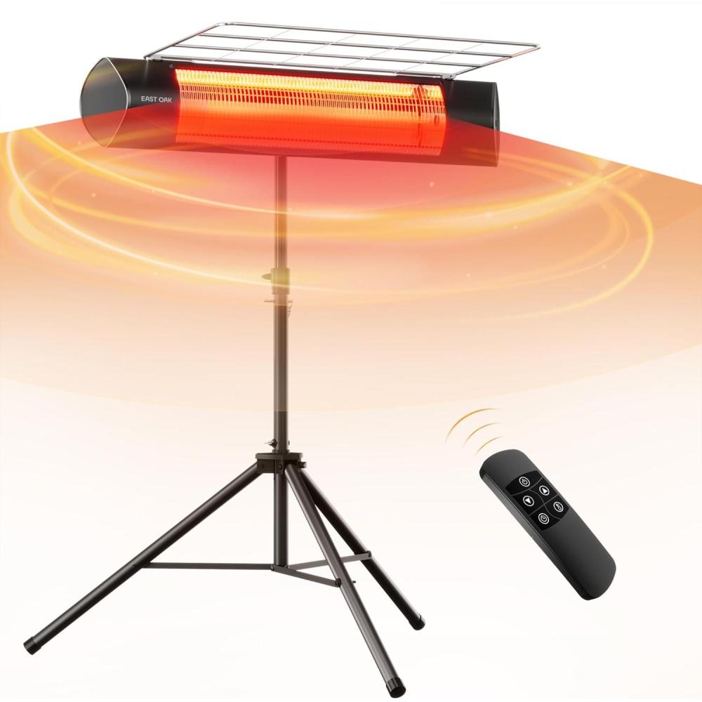 imageEAST OAK Electric Outdoor Indoor Heater 1500W Patio Infrared Heater with Adjustable Standing IP55 Waterproof Wall Mounted with 3 Heat Levels and Tipover ampamp Overheating Protection 2024 UpgradeBlack2023