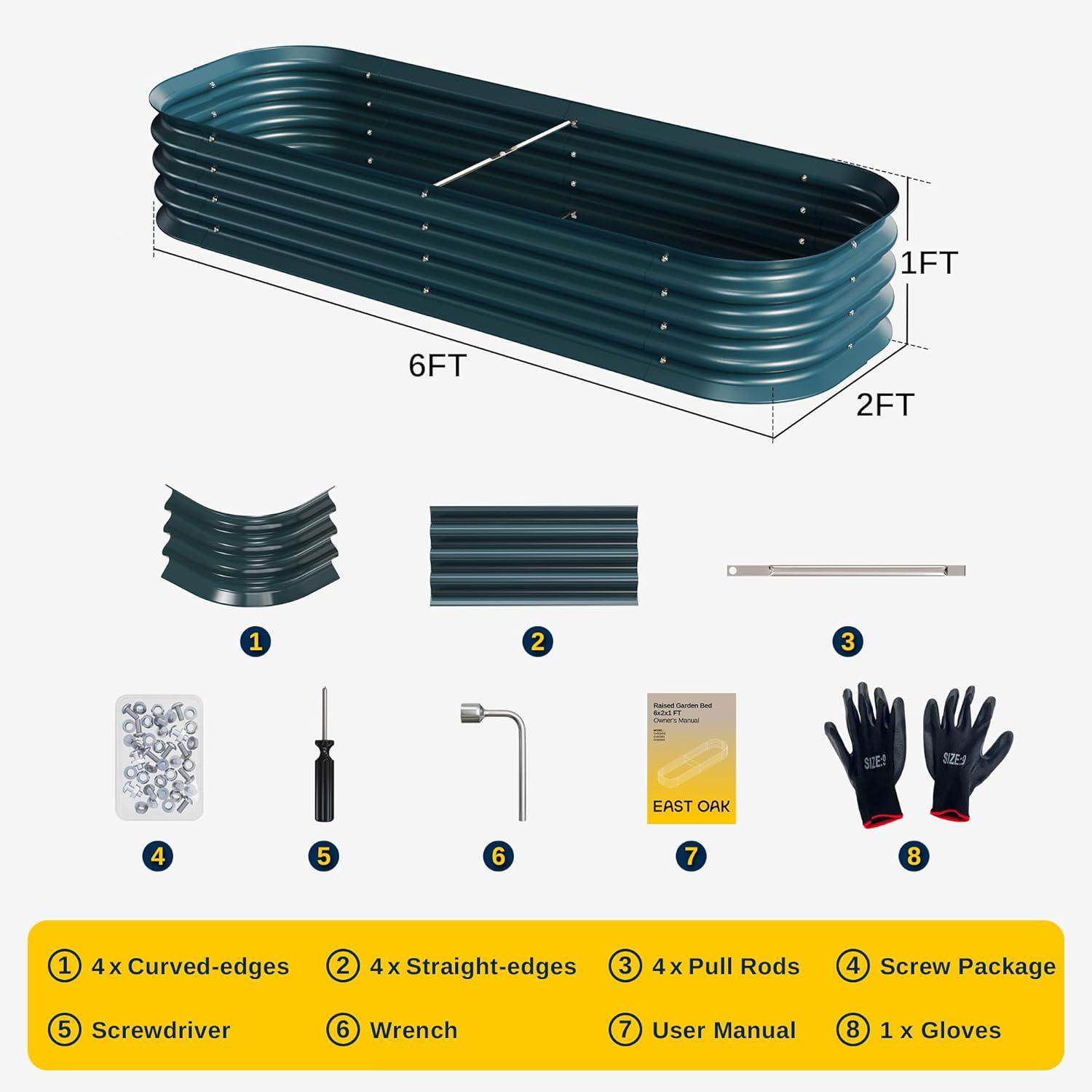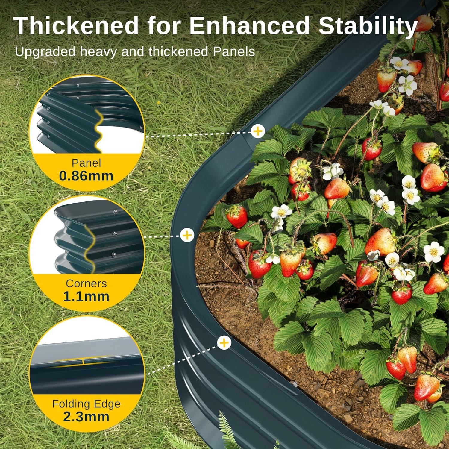 East oak metal raised garden bed is thicker than 90% of garden beds on the market, not only safe and user-friendly but also rust-free and paint-peel proof.