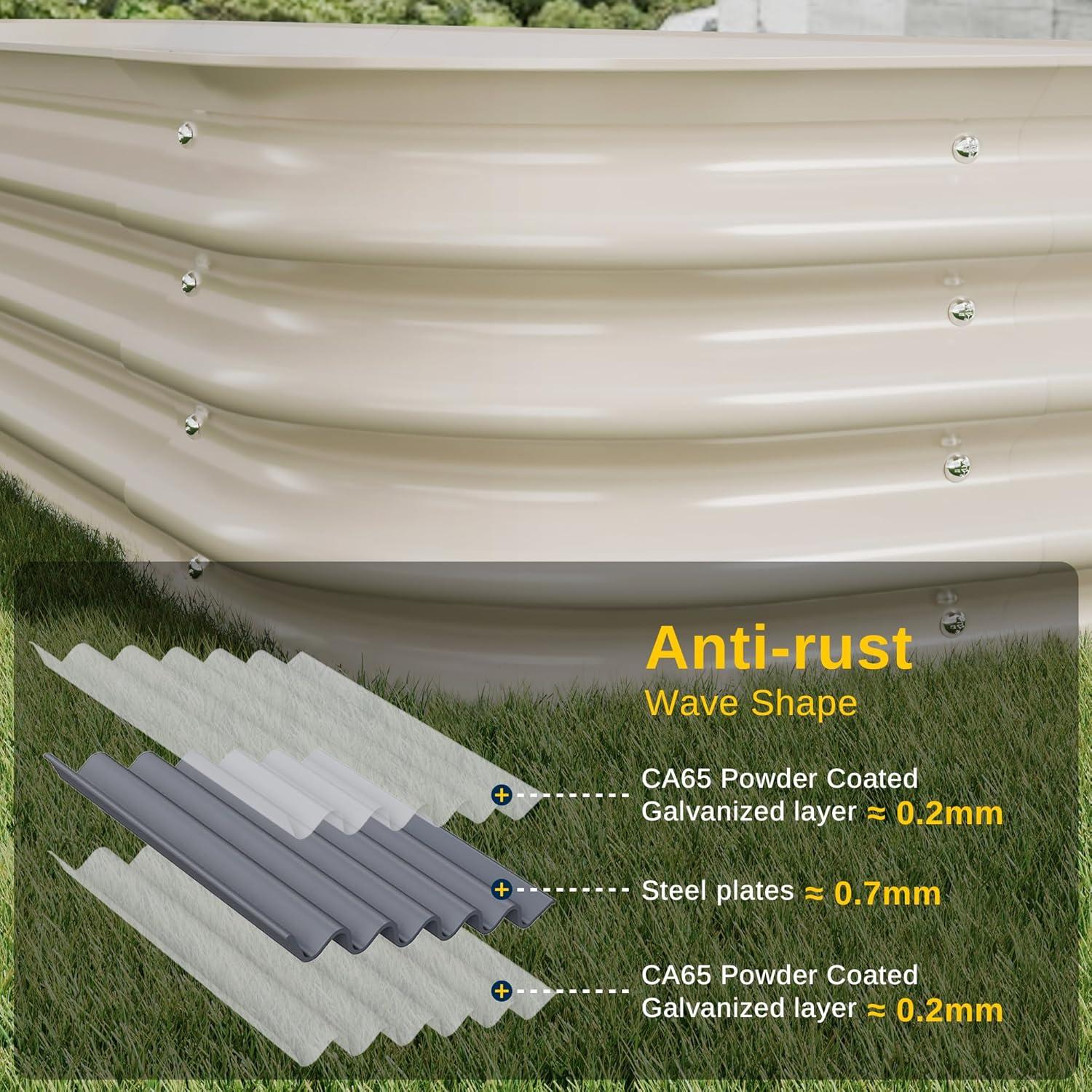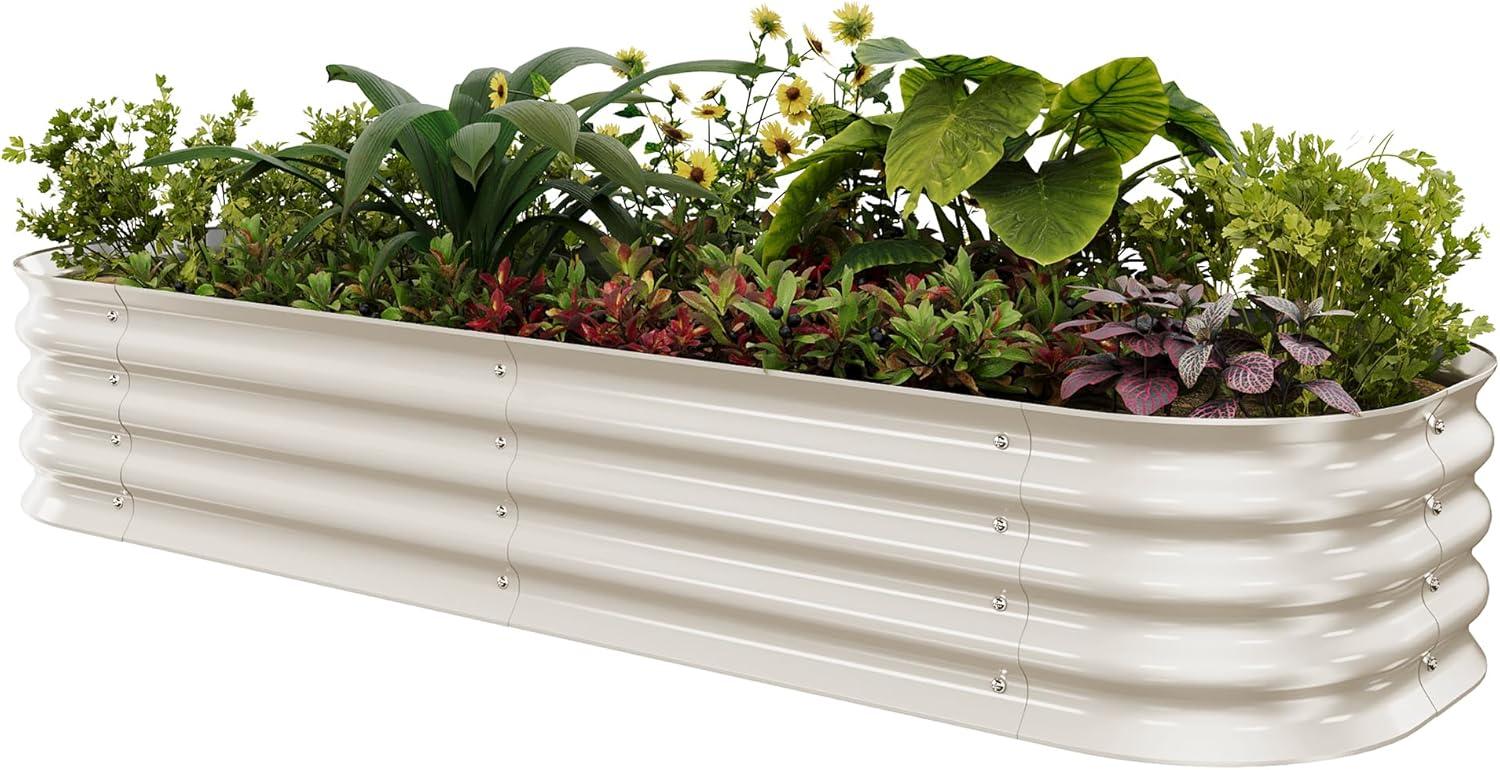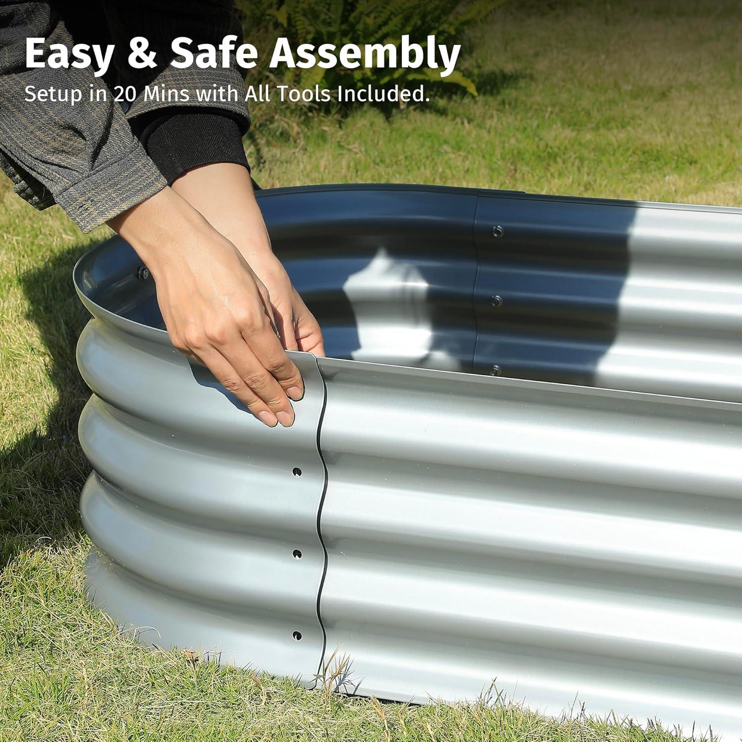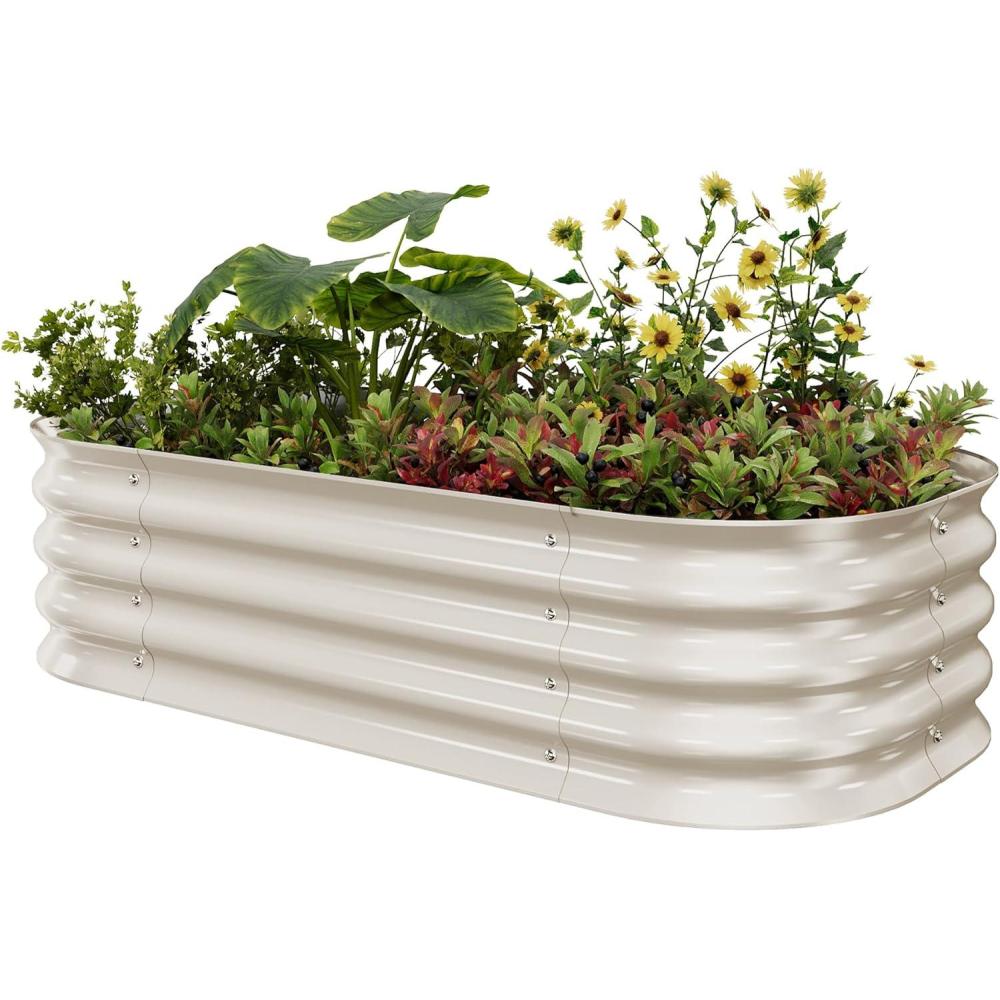 EAST OAK Galvanized Raised Garden Bed Kit, 4 x 2 x 1ft Oval Metal Planter Boxes Outdoor with Anti-Rust Coating, Sturdy Raised Garden Bed for Water Trough, Vegetables, Gardening Whisper White(Whisper White)