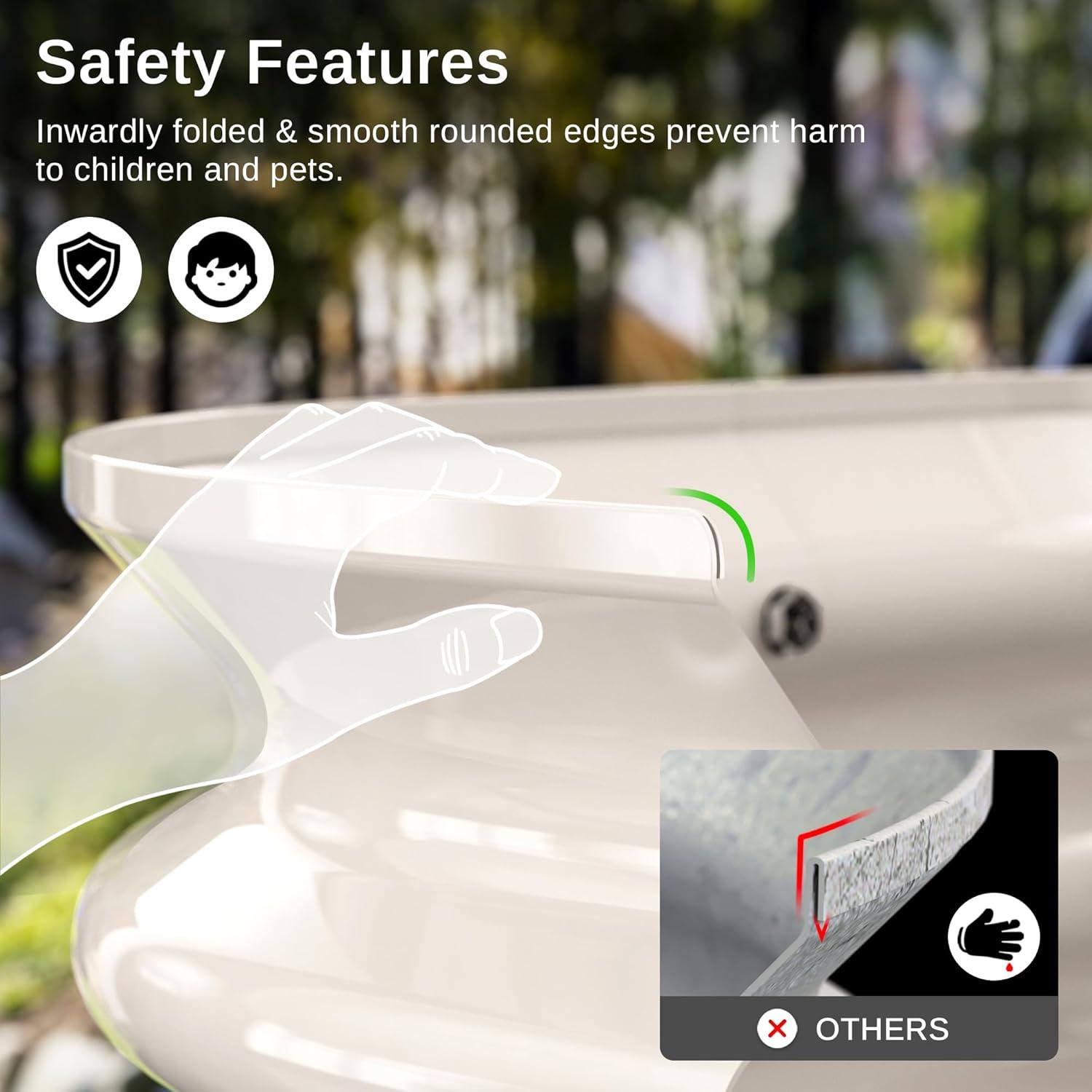 𝗦𝗮𝗳𝗲𝗿 𝗨𝘀𝗲 𝗮𝗻𝗱 𝗜𝗻𝘀𝘁𝗮𝗹𝗹𝗮𝘁𝗶𝗼𝗻 𝗣𝗿𝗼𝗰𝗲𝘀𝘀: The garden bed features an elliptical design, internal folding and smooth round edges devoid of sharp corners, which can provide protection during installation and prevent harm to children and pets