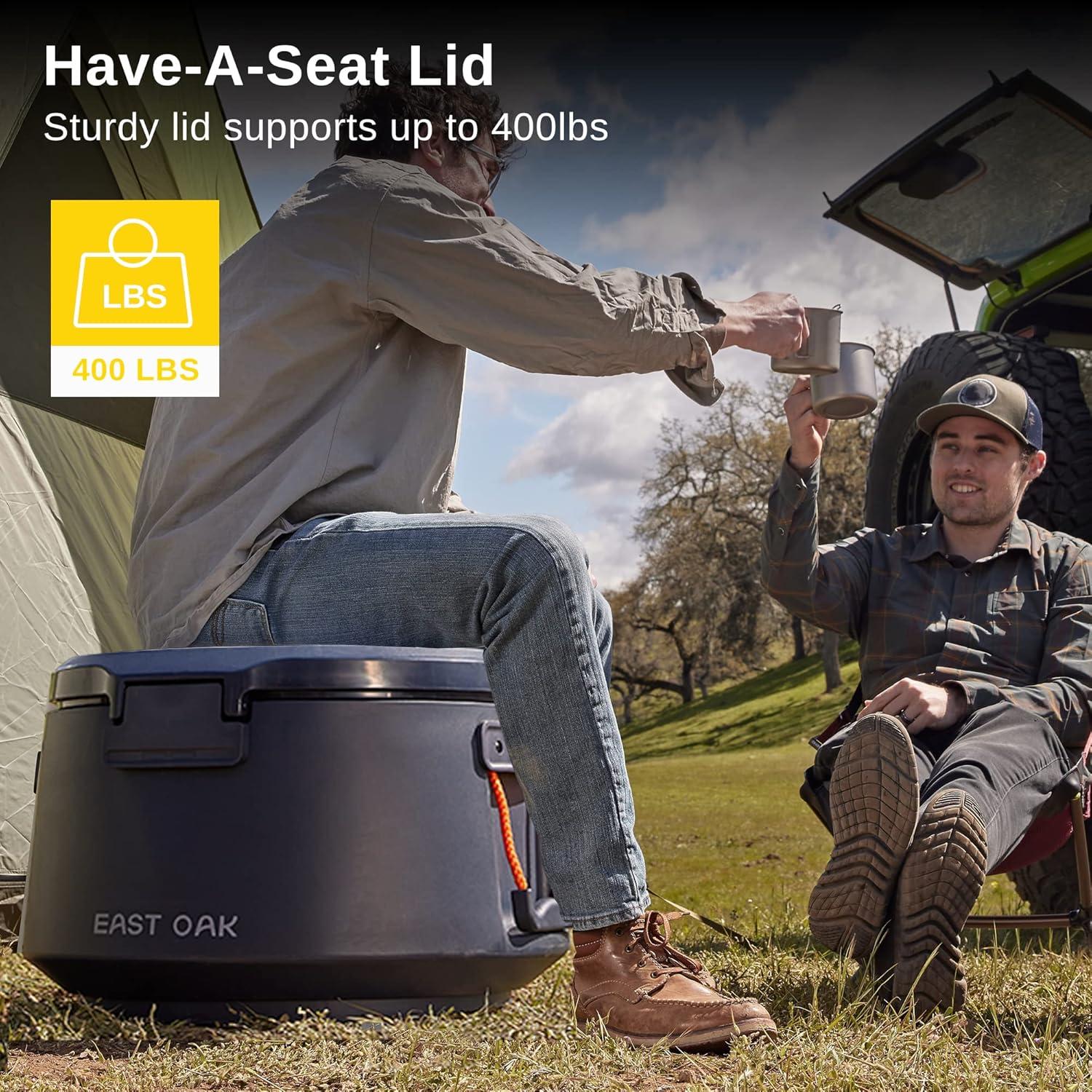 East Oak Large Portable Leak-Proof Outdoor Hard 44 Cans Cooler with Drain and Handle, High-Capacity Ice Chest Box with Removable Lid, Insulated Rotomolded Cooler for Camping, Beach