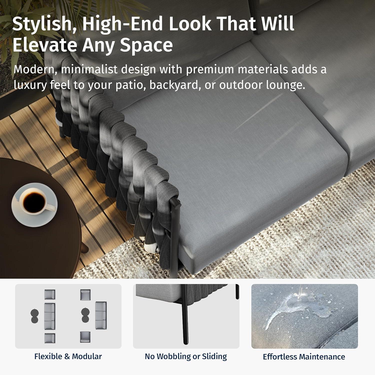 PATENTED STYLISH 3-PIECE PATIO CONVERSATION SET: The whole series of sofas are designed by East Oak and have patented appearance design. Our 3 pieces patio furniture set not only with a modern look and elegant design, but also is comfortable and durable, adding a contemporary flair to the surroundings. Perfect for most indoor or outdoor decoration, (You can buy our furniture cover by searching “B0D2DLKNJS or B0D2DJ2S21” )