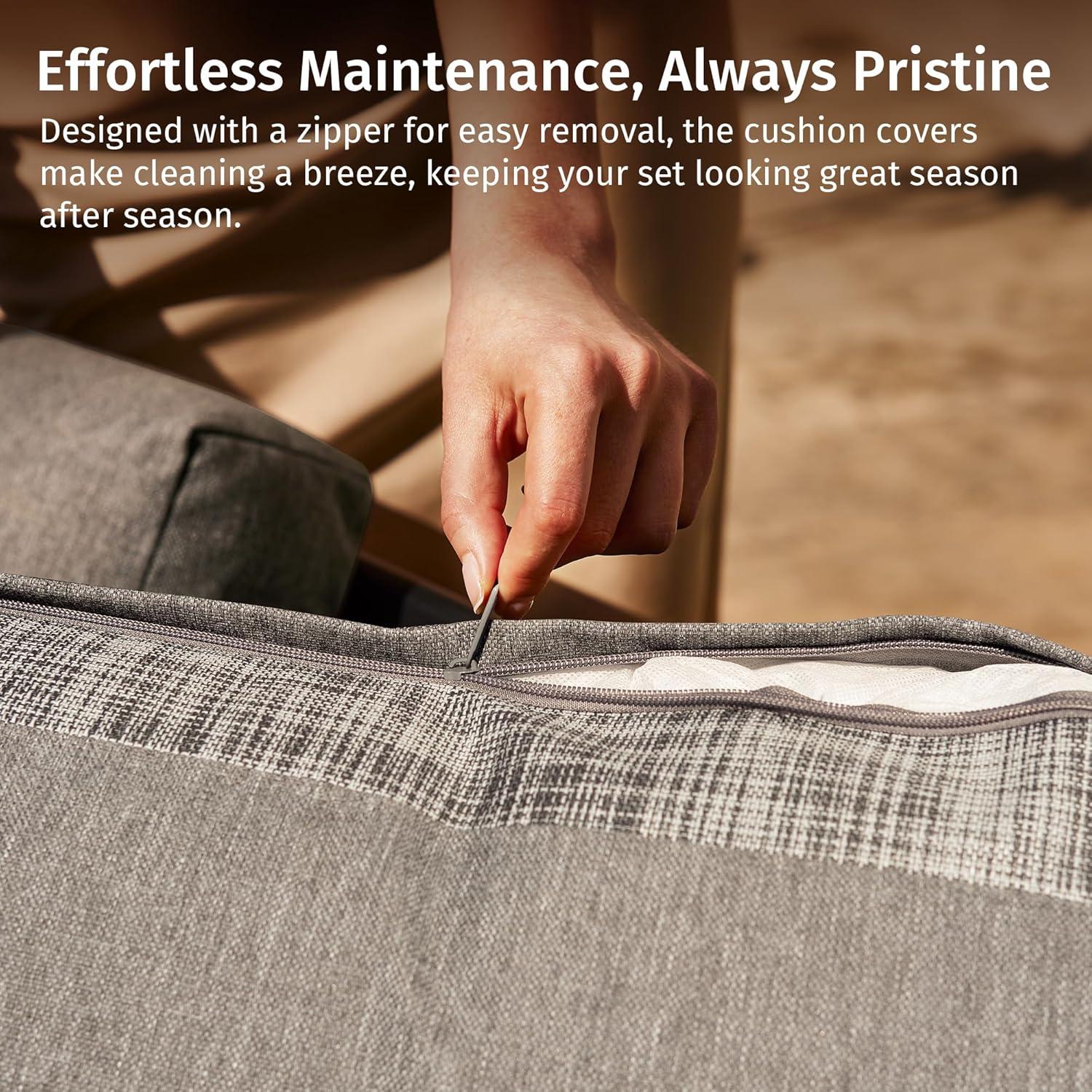 EAST OAK Courtyard Patio Furniture Set, 4-Piece Outdoor Patio Set with Sofa, Removable & Washable Deep Seating Cushion, Tempered Glass Table, Outside Patio Conversation Sets, Black & Grey(Grey)