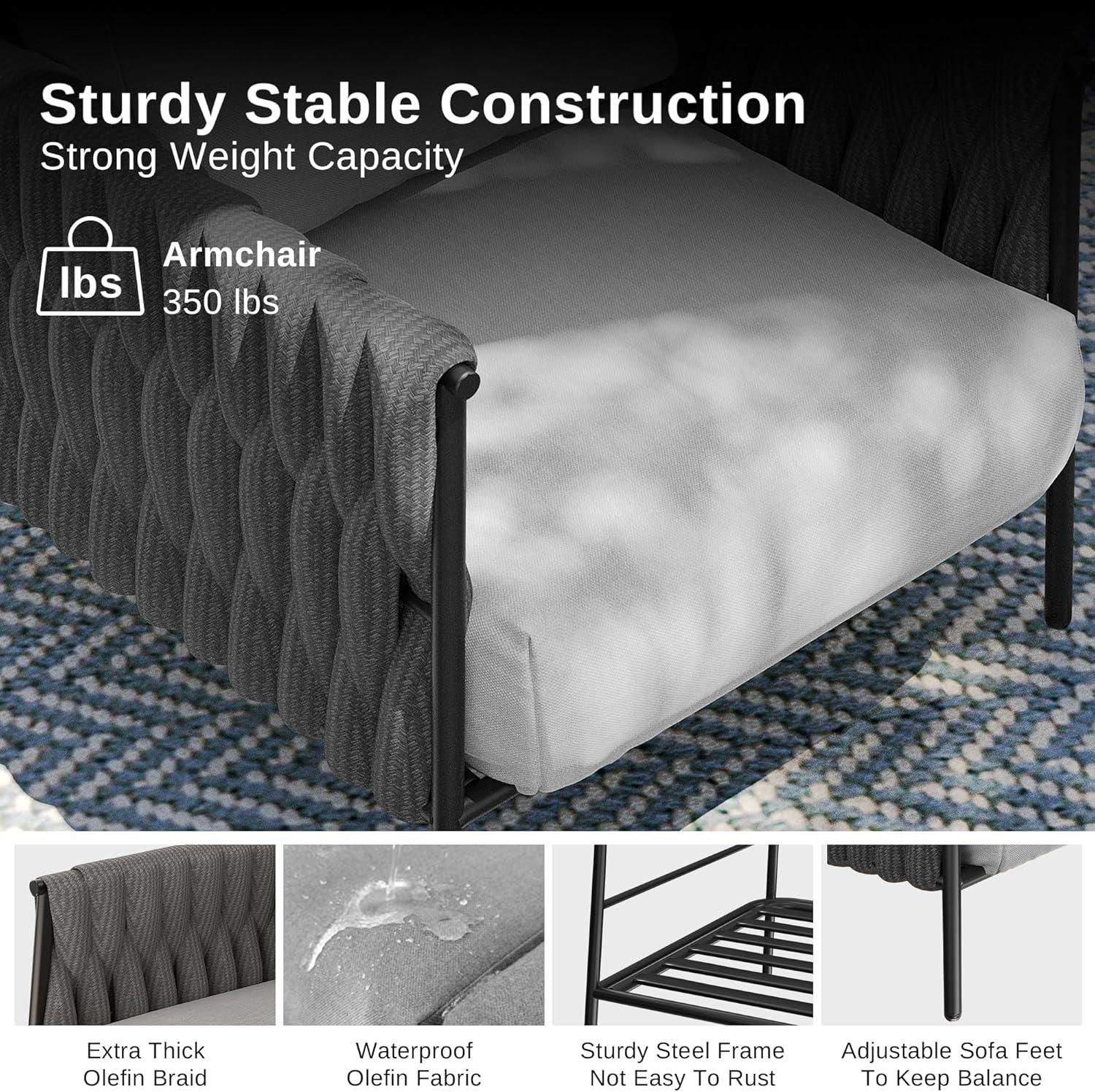 EAST OAK Modern 3 Pieces Patio Conversation Set, Armchairs with Coffee Table, Outdoor Furniture Set with Cushion, Earth Black & Misty Grey(Earth Black & Misty Grey)