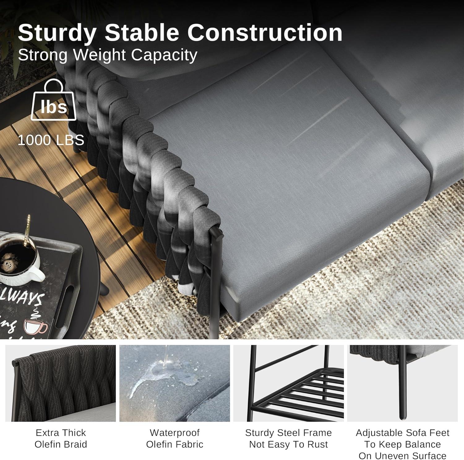 PATENTED STYLISH 3-PIECE PATIO CONVERSATION SET: The whole series of sofas are designed by East Oak and have patented appearance design. Our 3 pieces patio furniture set not only with a modern look and elegant design, but also is comfortable and durable, adding a contemporary flair to the surroundings. Perfect for most indoor or outdoor decoration, (You can buy our furniture cover by searching “B0D2DLKNJS or B0D2DJ2S21” )
