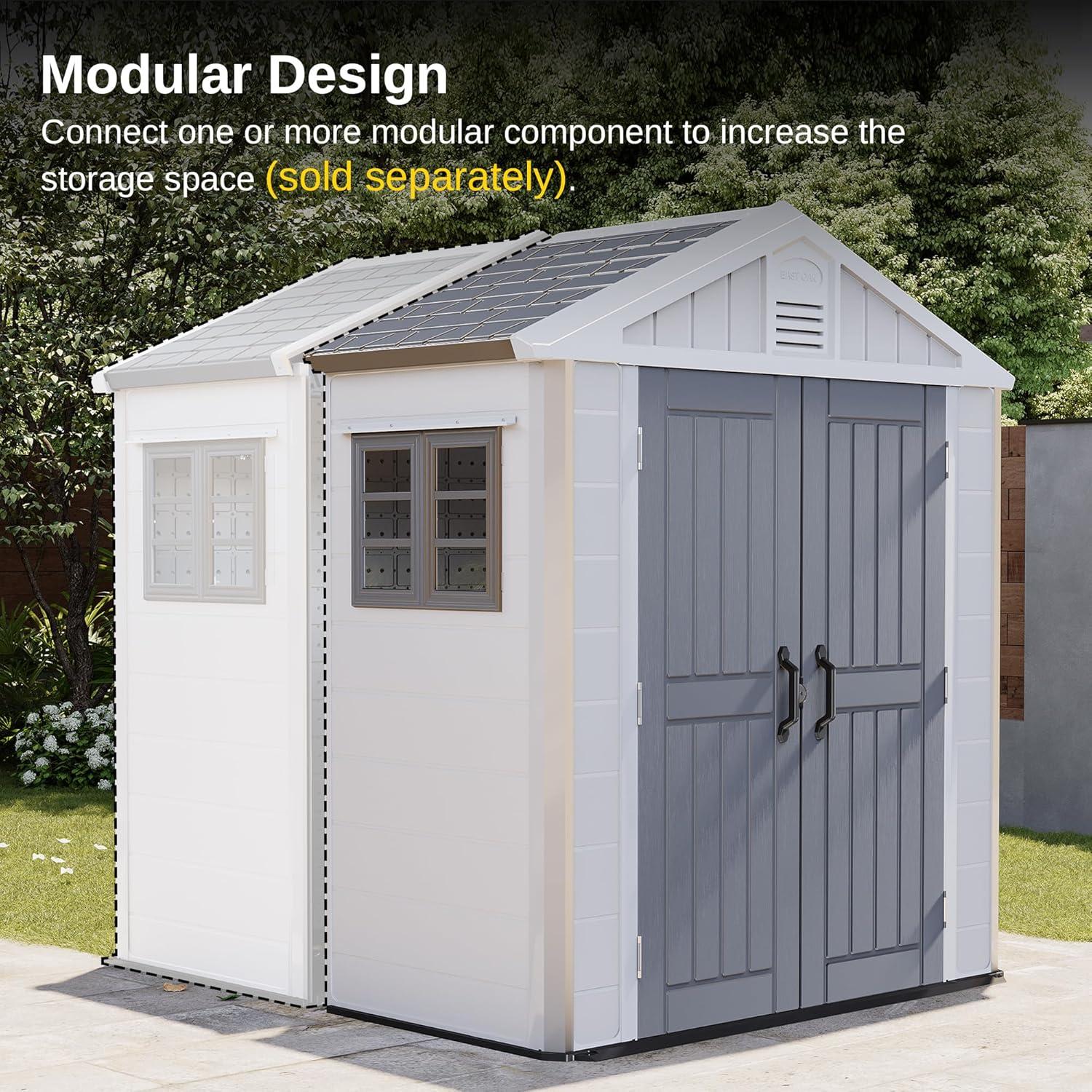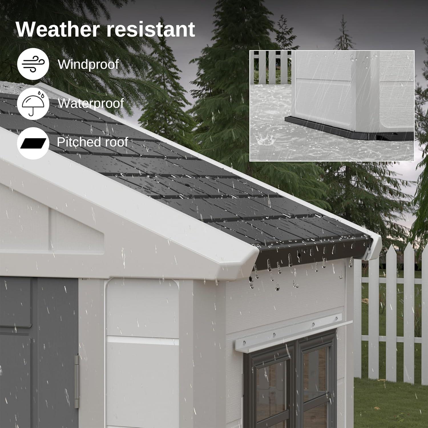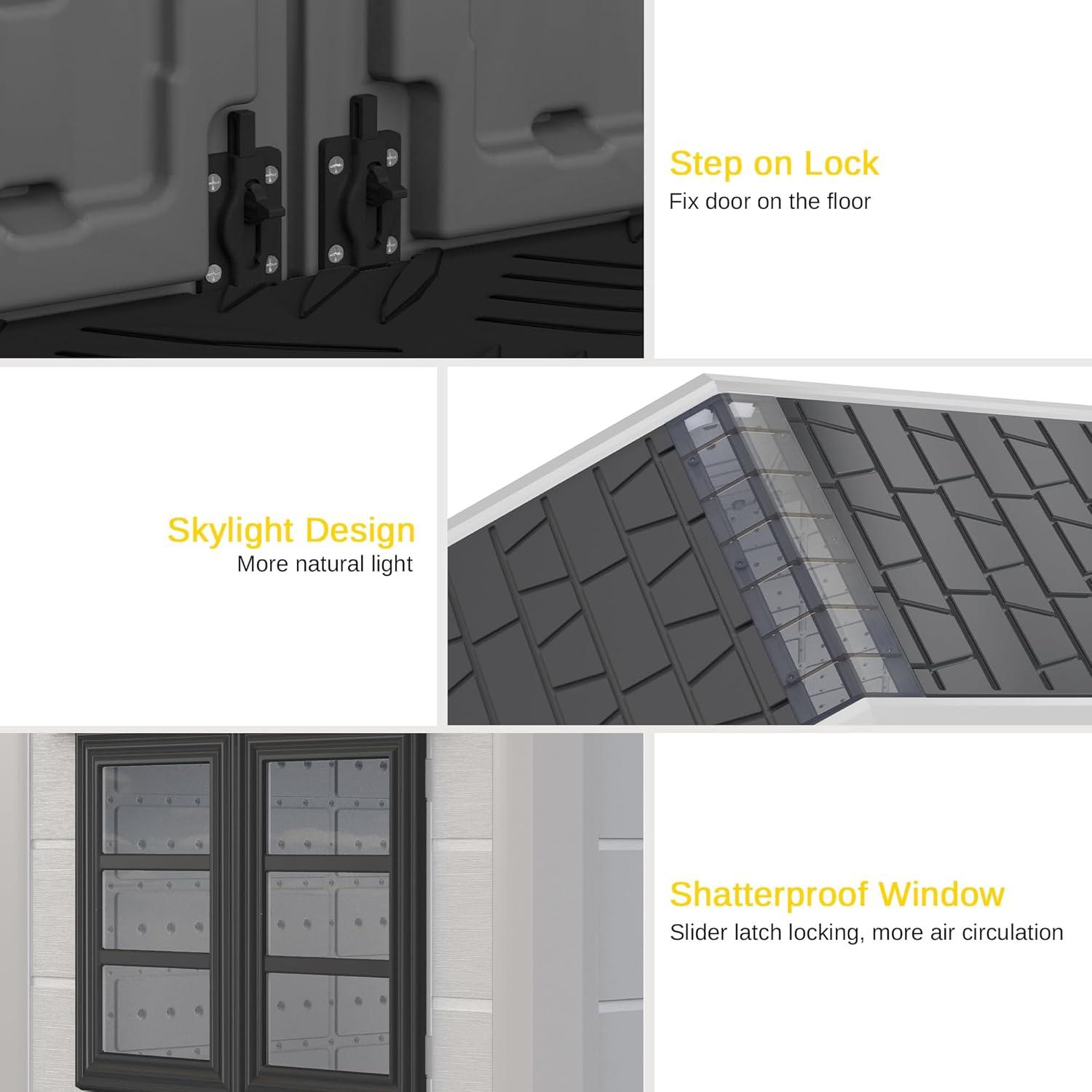 𝗗𝗨𝗥𝗔𝗕𝗟𝗘 𝗪𝗘𝗔𝗧𝗛𝗘𝗥-𝗥𝗘𝗦𝗜𝗦𝗧𝗔𝗡𝗧 𝗠𝗔𝗧𝗘𝗥𝗜𝗔𝗟: The storage shed is made of high quality HDPE material, which is UV-proof 8002+hrs and waterproof. It can be used daily for five years without fading.