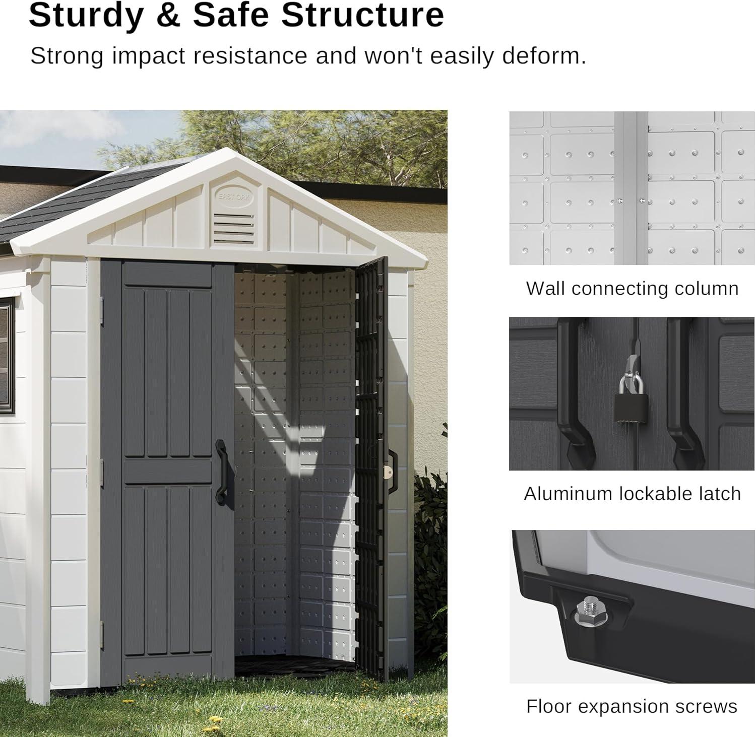 𝗦𝗔𝗙𝗘𝗥 𝗢𝗨𝗧𝗗𝗢𝗢𝗥 𝗦𝗧𝗢𝗥𝗔𝗚𝗘: The East Oak Outdoor Shed comes with durable aluminum alloy latch that is not easily rusted and deformed, and is also equipped with a lock to make outdoor storage more secure.