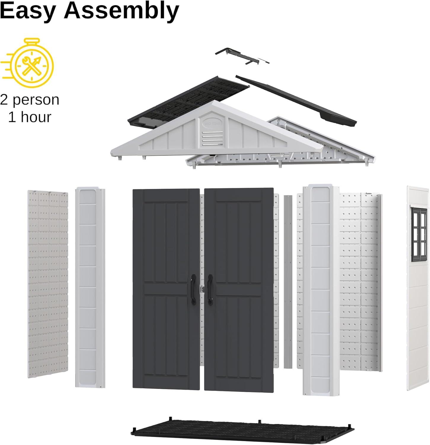 𝗘𝗔𝗦𝗬 𝗧𝗢 𝗜𝗡𝗦𝗧𝗔𝗟𝗟: EAST OAK provides detailed user manuals for all outside storage sheds. Construction can be completed in less than 32 minutes. For more support, please refer to the installation video on the page.