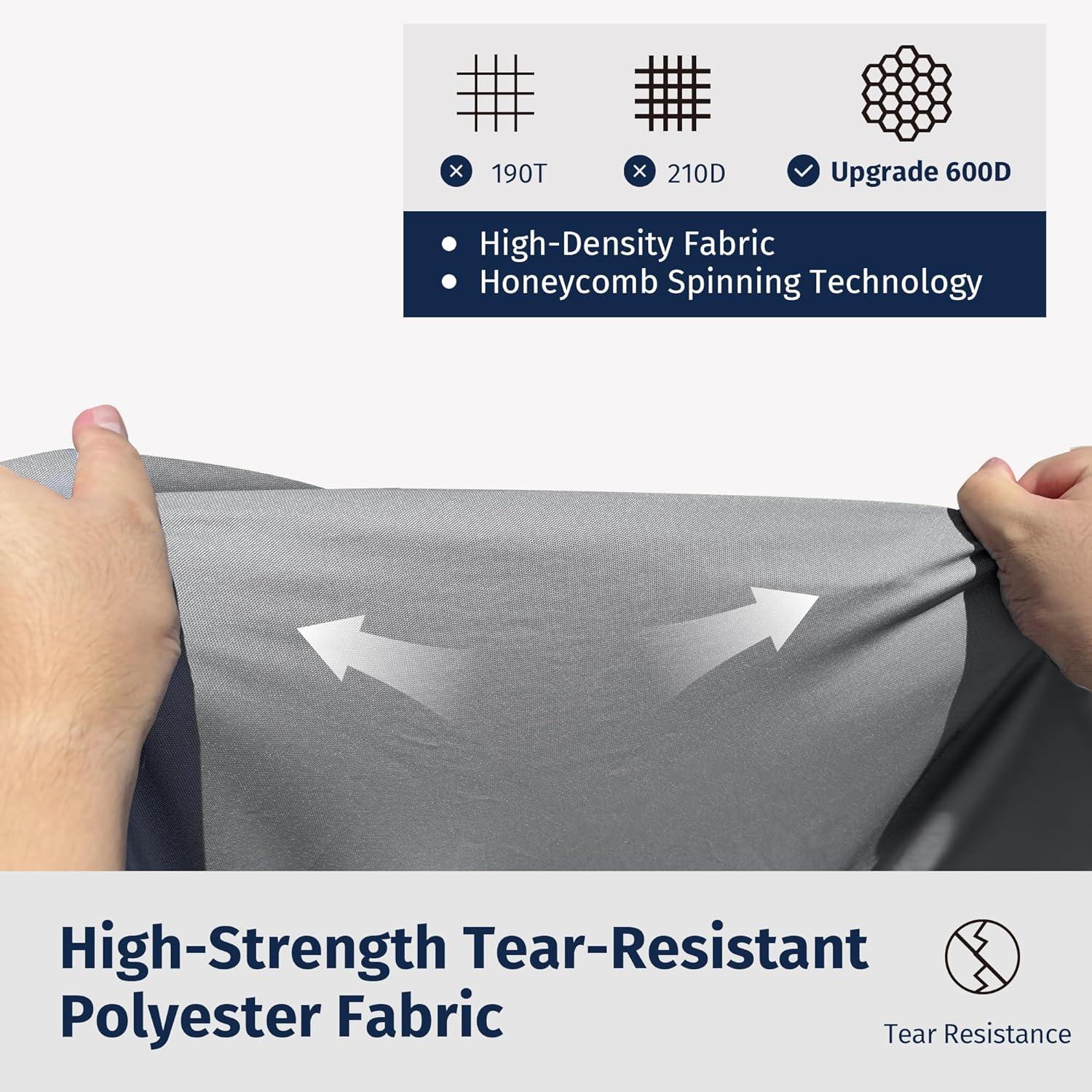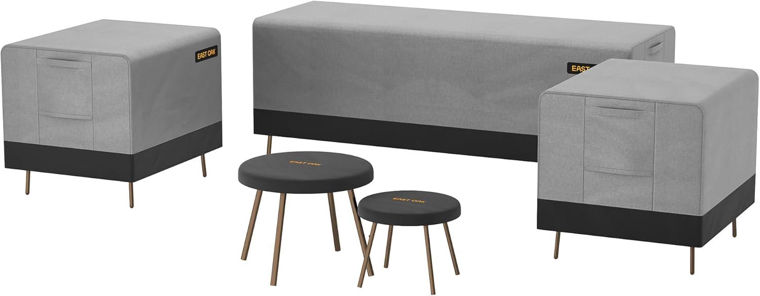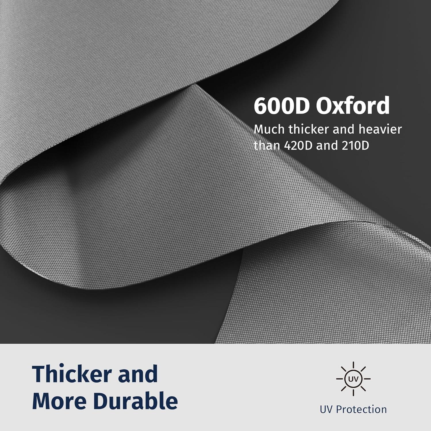 Superior TPU Waterproof Outdoor Cover: The EAST OAK outdoor furniture cover is crafted from durable 600D fabric, ensuring water beads up and rolls off effortlessly. The interior is reinforced with a high-grade waterproof TPU coating and pressure-glued seam tape, guaranteeing zero water leakage. This superior design keeps your patio furniture dry, even during heavy rain