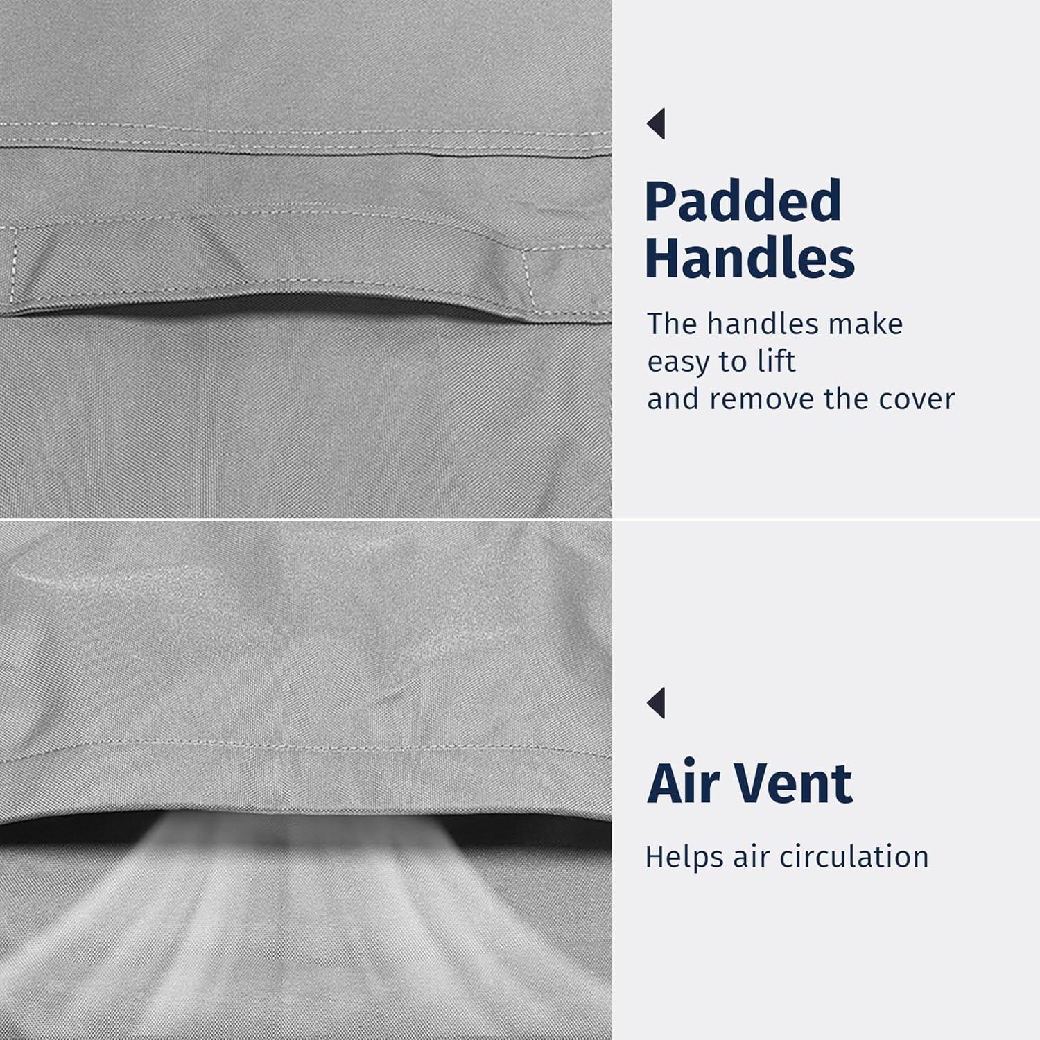 – Offer you more choices Made of 600D high-density heavy duty fabric, more durable than other 420D/210D products. Due to the TPU coating, our patio furniture set cover is 100% waterproof, weatherproof, weather resistant and won't crack even in cold weather of -4℉ Air vents on two sides have extra ventilation features, keep your outdoor furniture dry inside, and avoid moisture.