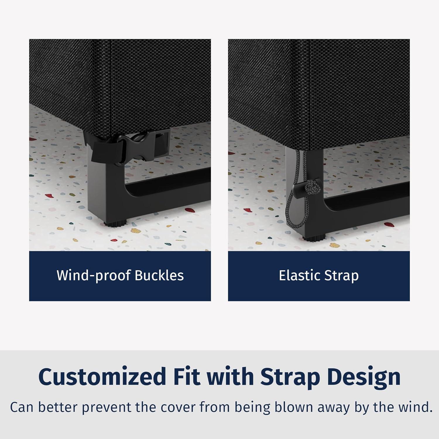 Customized Fit & Easy to Use: The cover's bottom features an elastic strap & 2 strap buckles, ensuring a perfect fit for your outdoor table, even in harsh weather. This feature provides all-around protection for your table, offering a customized and snug fit