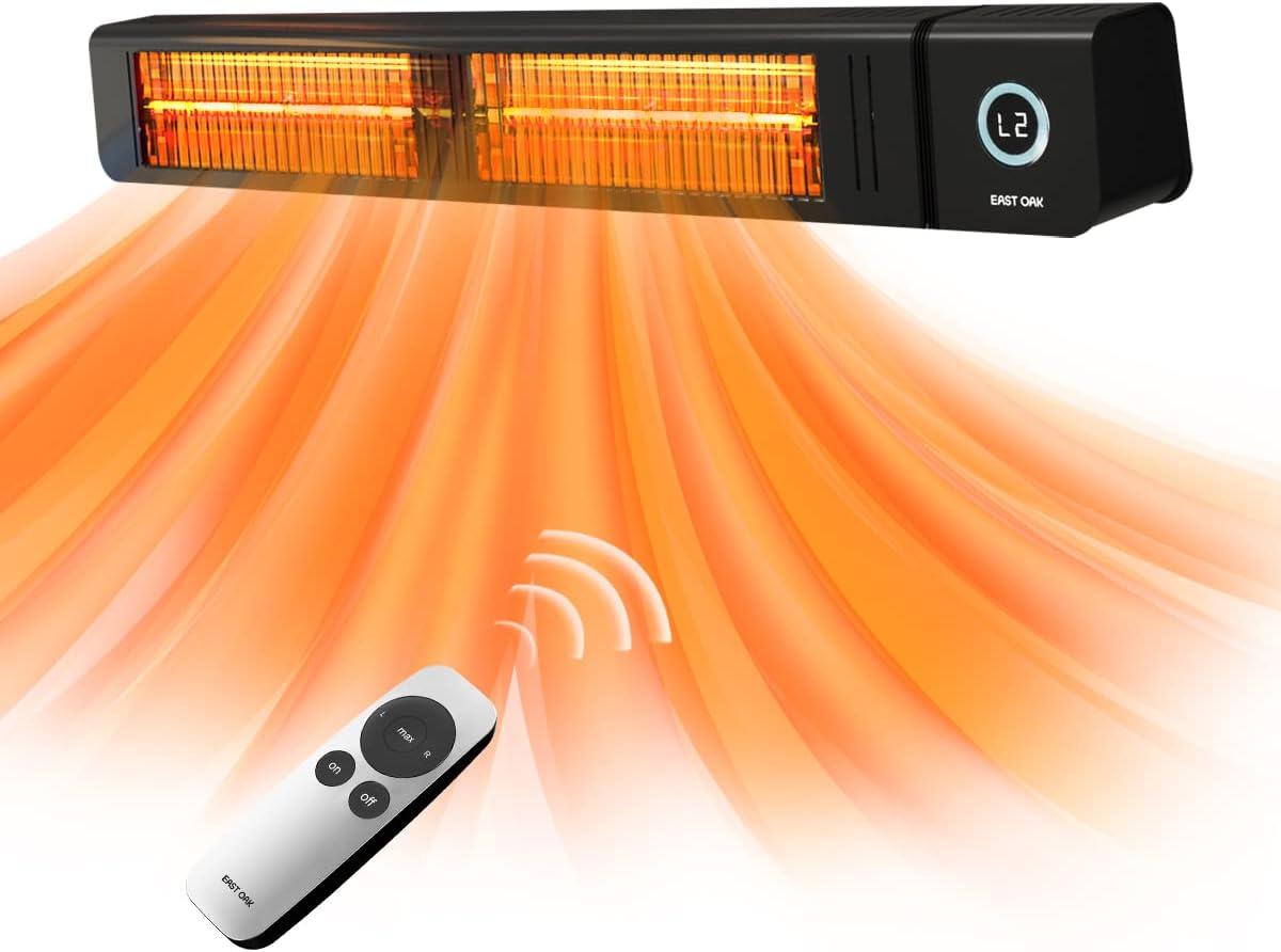 imageEAST OAK Patio Heater for Commercial Use 4000W Wall Mounted Infrared Heater Outdoor Heaters for Patio for Large Area IP65 Waterproof Electric Heater Fast Heating with Remote Control 240V BlackHeater Fire Pit  WFP22003