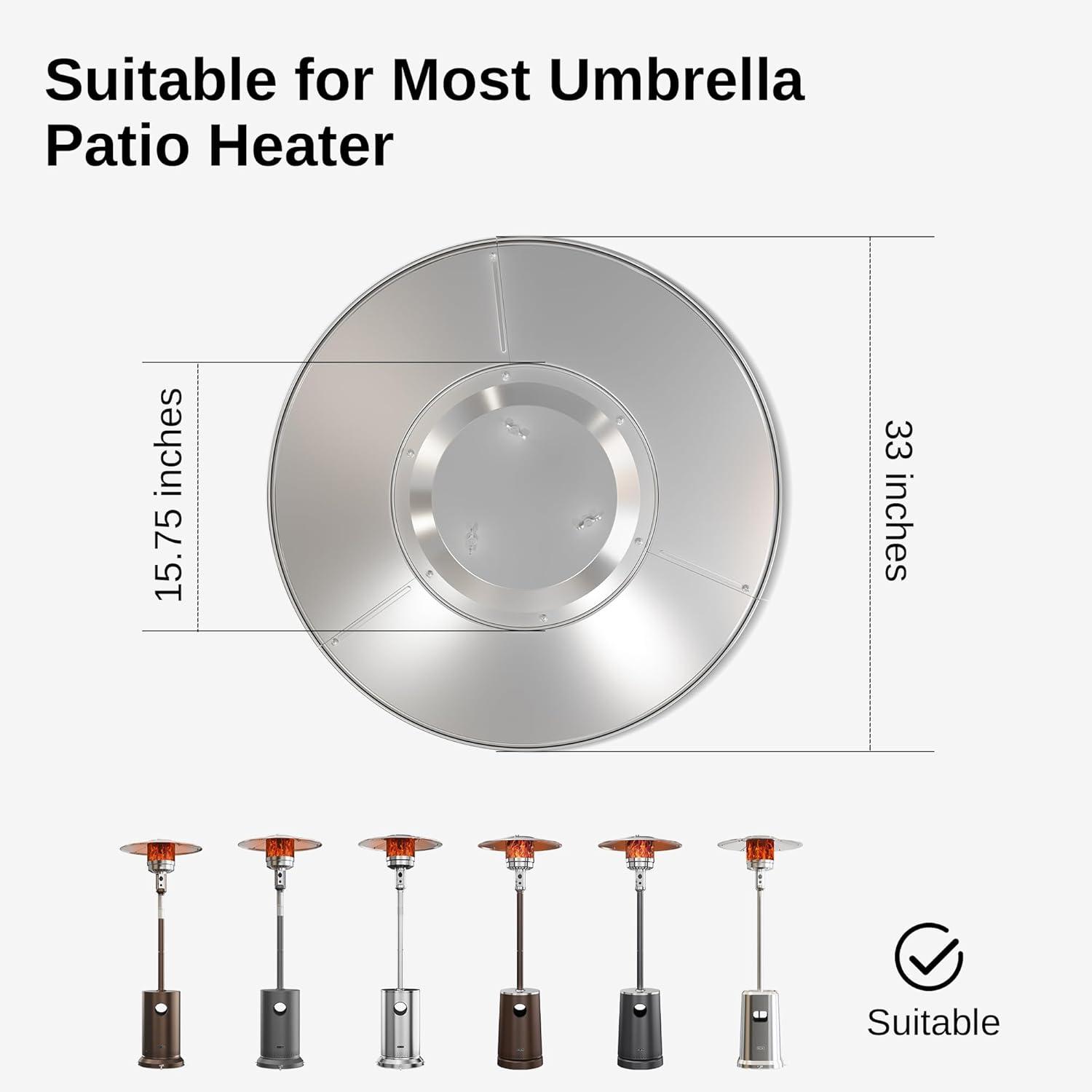 𝗢𝗽𝘁𝗶𝗺𝗮𝗹 𝗛𝗲𝗮𝘁𝗲𝗿 𝗔𝗰𝗰𝗲𝘀𝘀𝗼𝗿𝘆 : This Patio Heater Top Reflector Shield serves as an ideal outdoor heater accessory, protecting patio heaters during adverse weather. It efficiently concentrates heat, aiding energy conservation for most umbrella heaters
