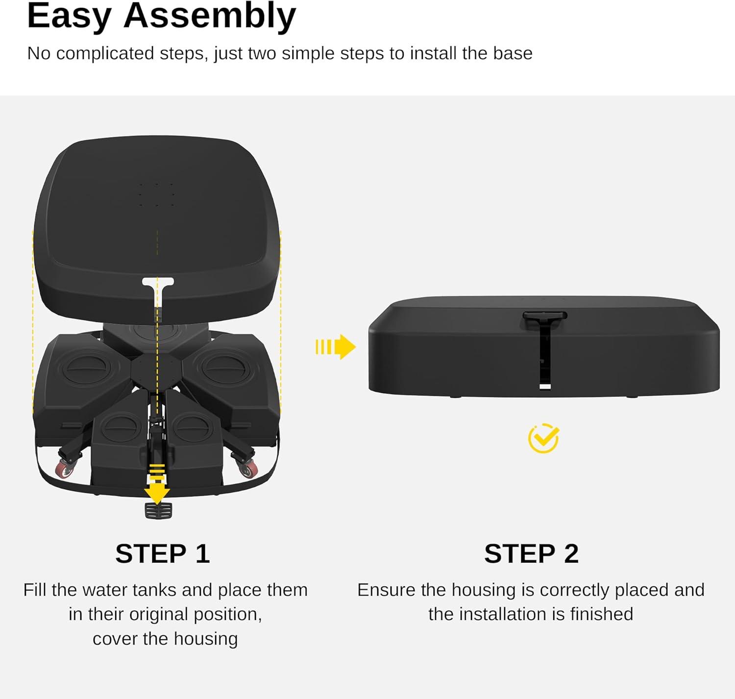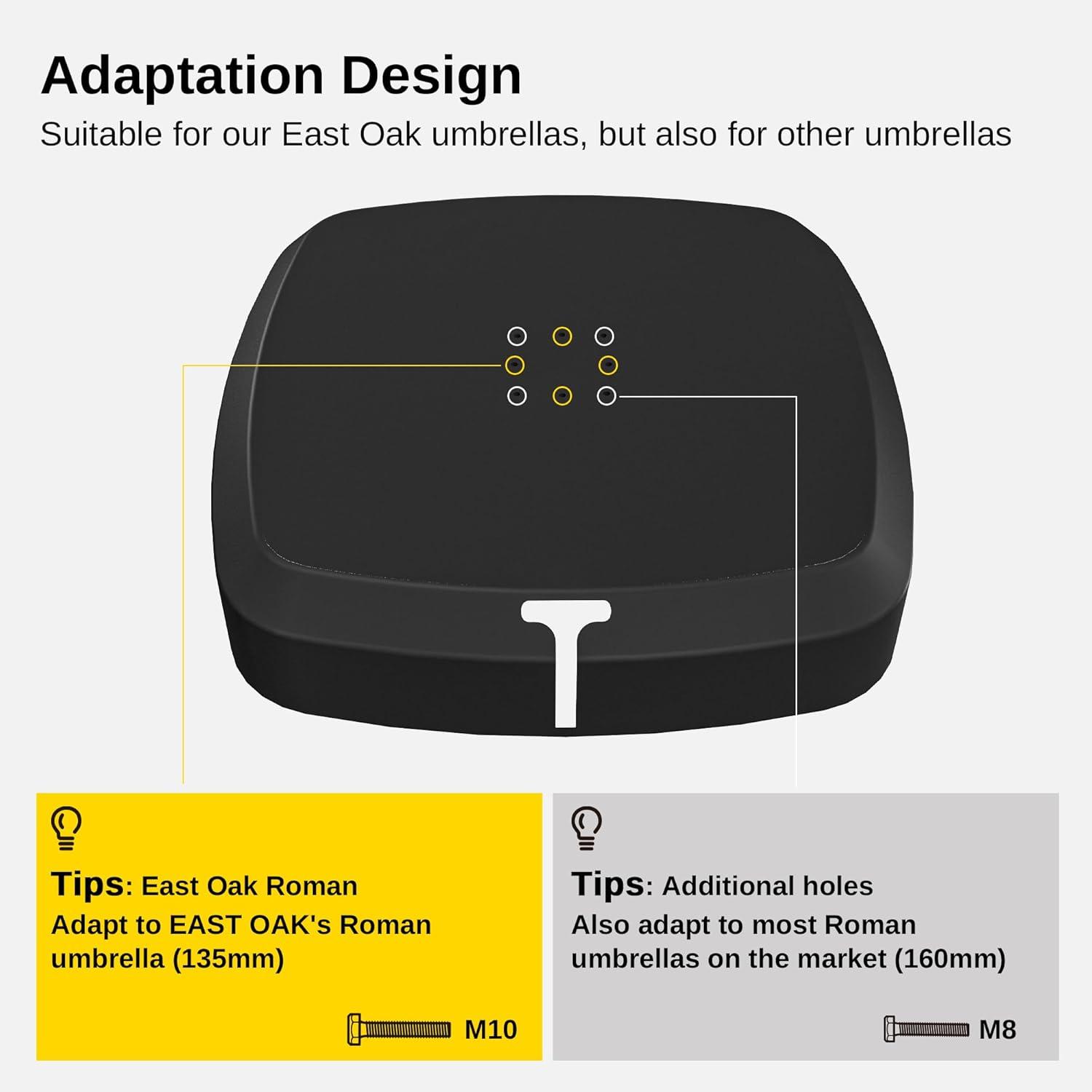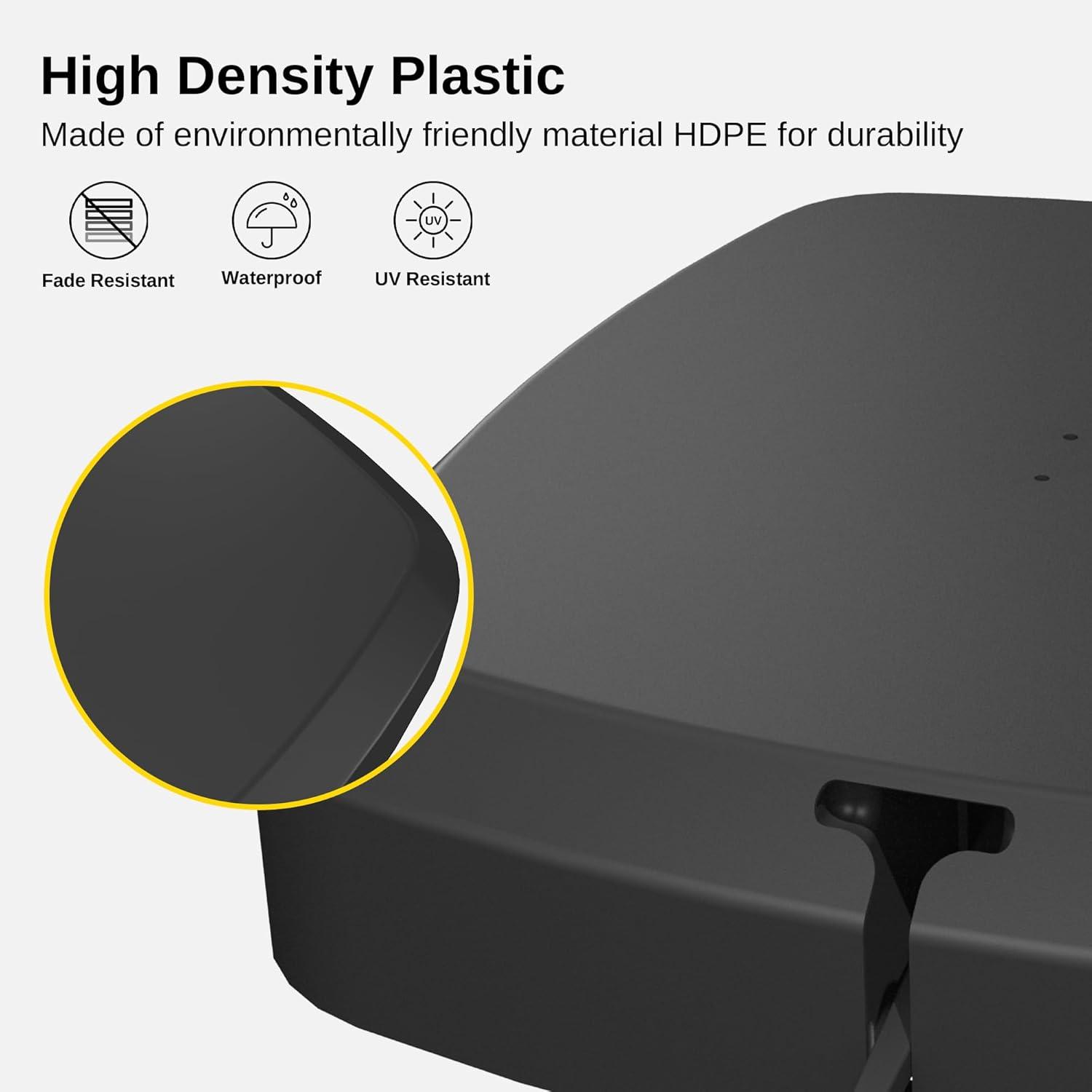 Durable and Weather-Resistant: The umbrella base is made of high-quality HDPE plastic with a weather-resistant coating, a one-piece metal frame, and 304 stainless steel screws which are highly durable and stable. Ideal for patio or other outdoor seating areas.