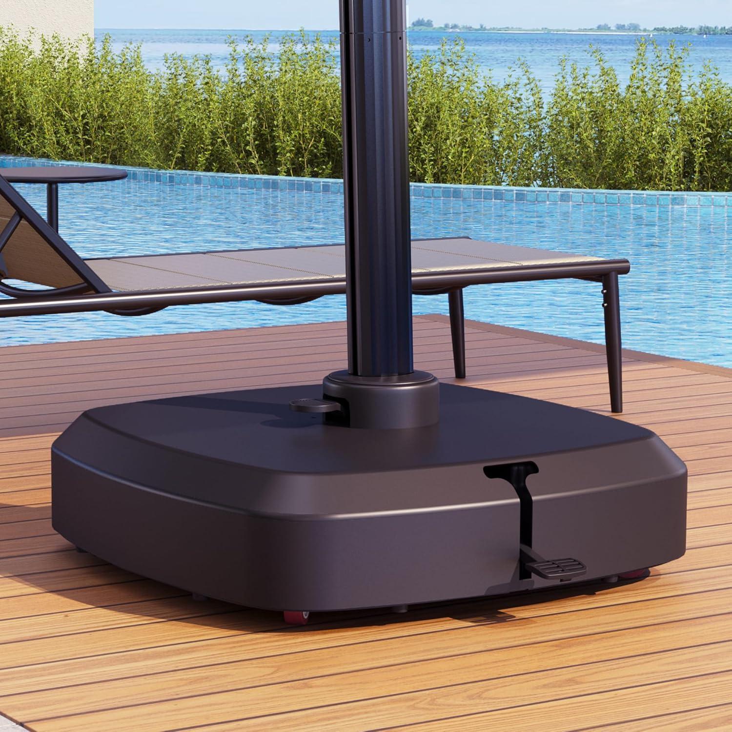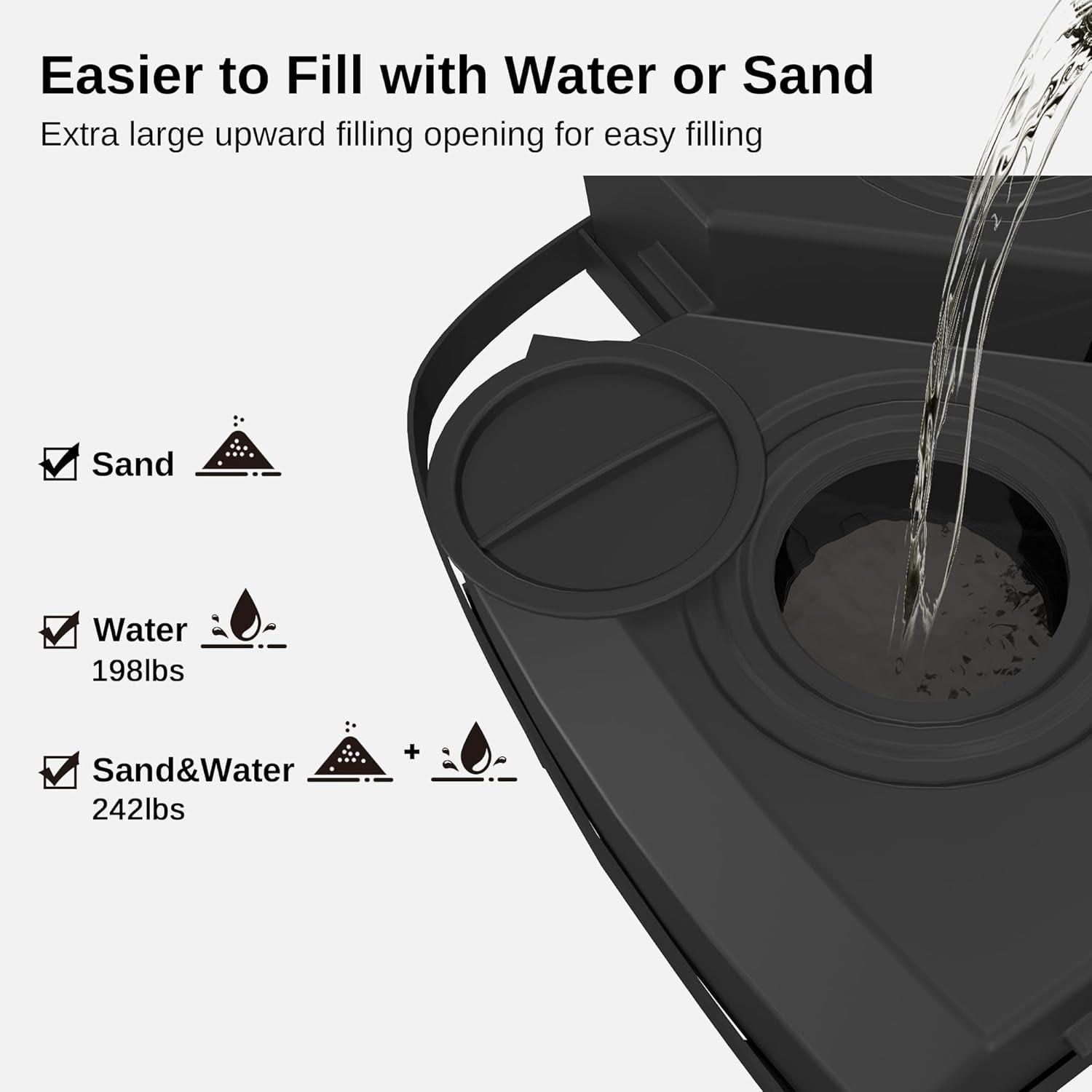 High Load-Bearing Capacity: The total weight of the base is approximately 242 lbs when filled with water and sand, and the total weight is 198 lbs when filled with water. More weight ensures that your patio umbrella has a reliable anchor point.