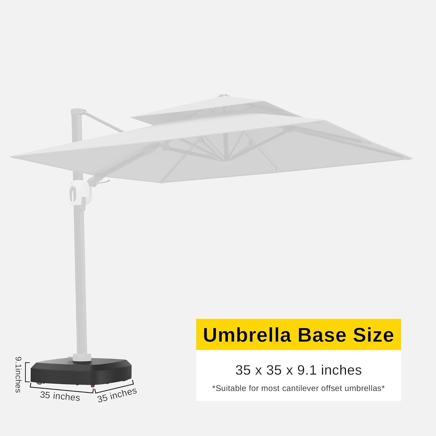 An Offset Umbrella is Essential: Suitable for all kinds of patio cantilever umbrellas, such as 8-ft. to 11-ft. patio cantilever umbrellas. (Before you purchase, please confirm the diameter of the turntable and the length between the holes. If you need a matching umbrella, search for items B0B9M1RS6B, B0B9RQGKBJ or B0B9M1TSC5.)