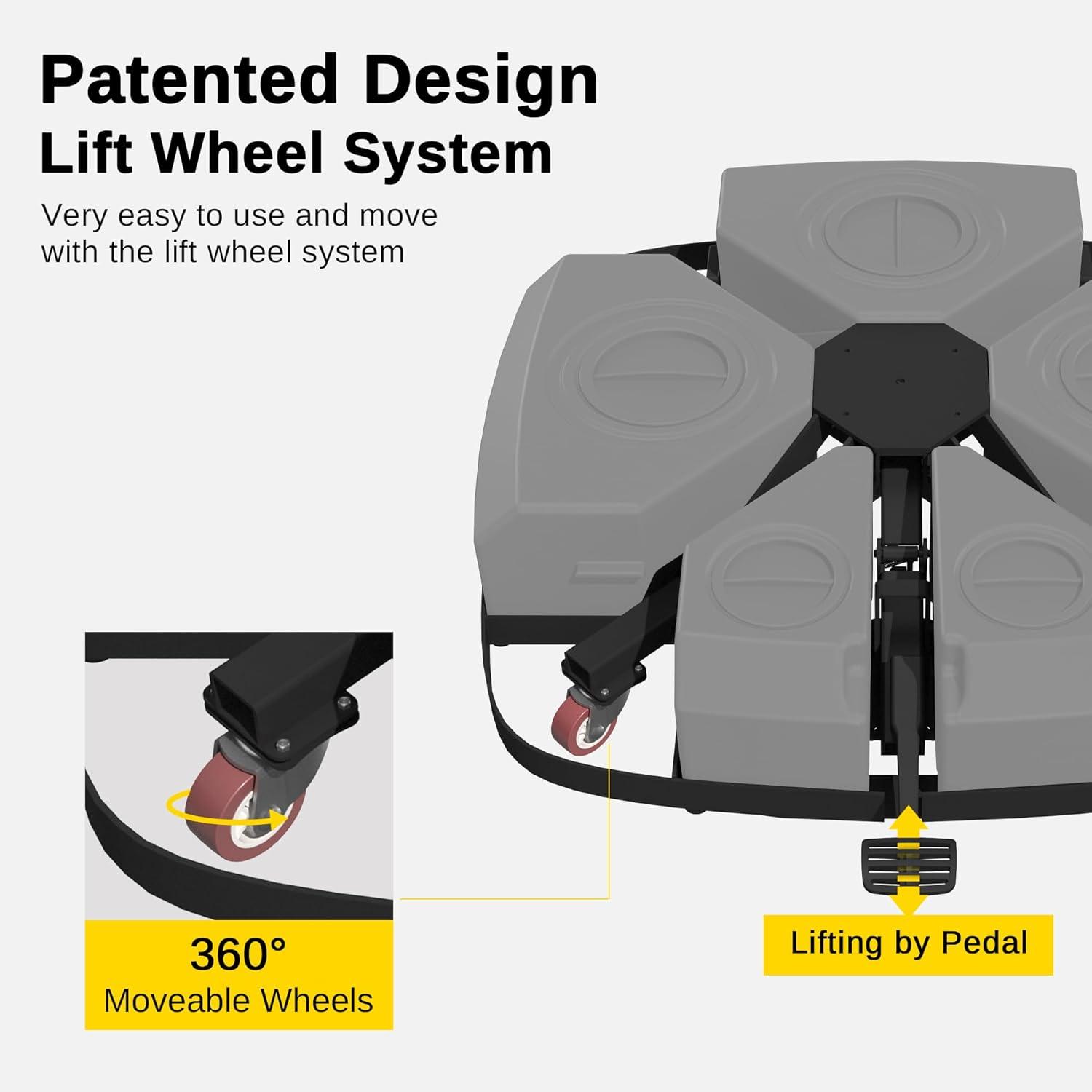 Super Easy Mobility: The lifting design with a set of four wheels allows you to move the base back and forth effortlessly, and once you reach your destination you can lower the wheels to keep it in place.