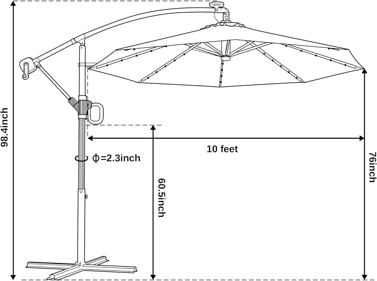 Suitable umbrella size:8ft to 10ft Patio Cantilever Umbrellas