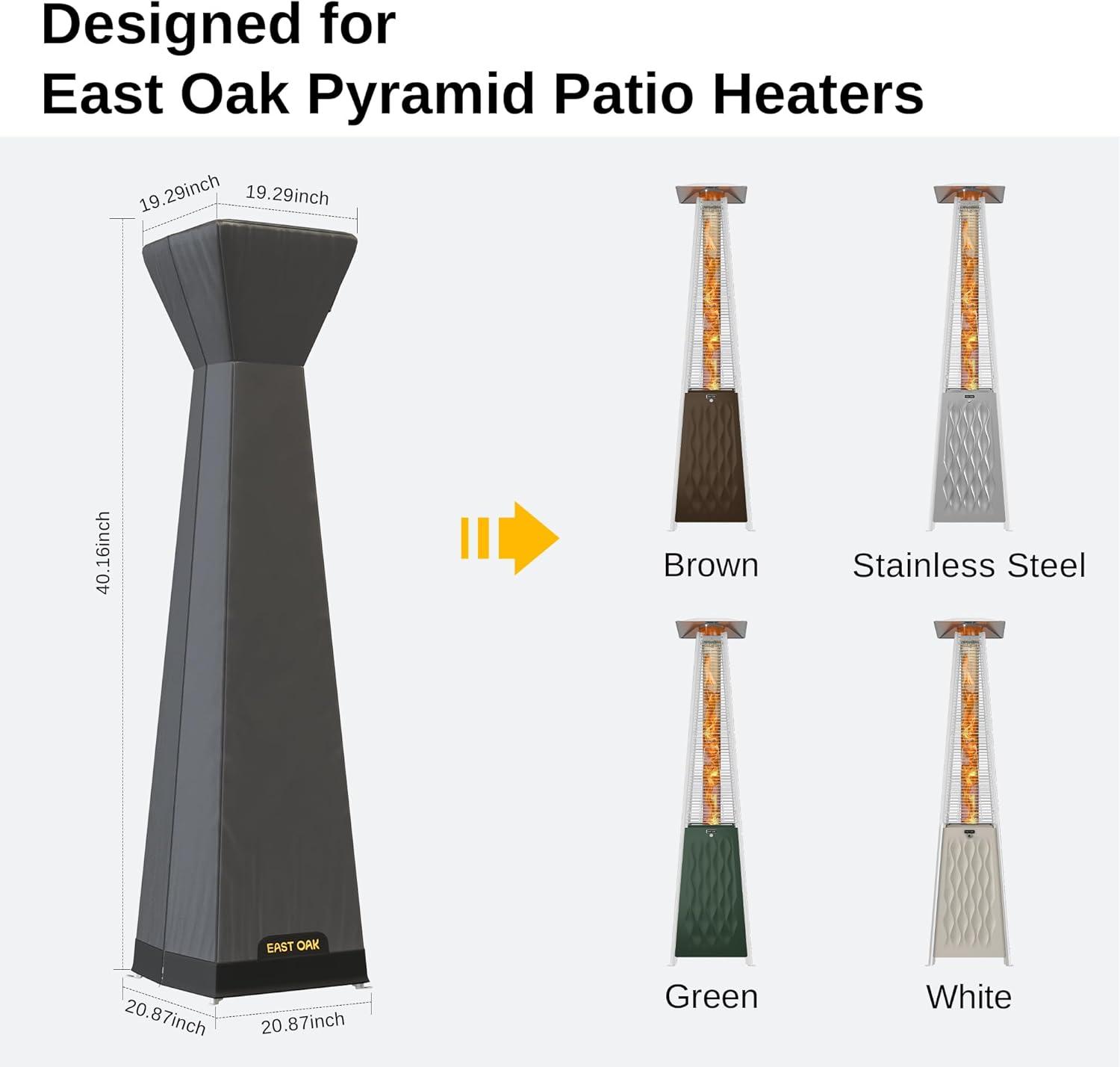 𝗣𝗿𝗼𝘁𝗲𝗰𝘁𝗶𝘃𝗲 𝗖𝗼𝘃𝗲𝗿𝘀 𝗳𝗼𝗿 𝗢𝘂𝘁𝗱𝗼𝗼𝗿 𝗛𝗲𝗮𝘁𝗲𝗿𝘀: The pyramid torch heater covers are designed to fit EAST OAK stand-up pyramid patio heaters. Protect your pyramid patio heater for outdoor use from being damaged or getting dirty by bad weather, like wind, dust, snow storms, or sunlight. It is necessary to get it to protect your patio heater.