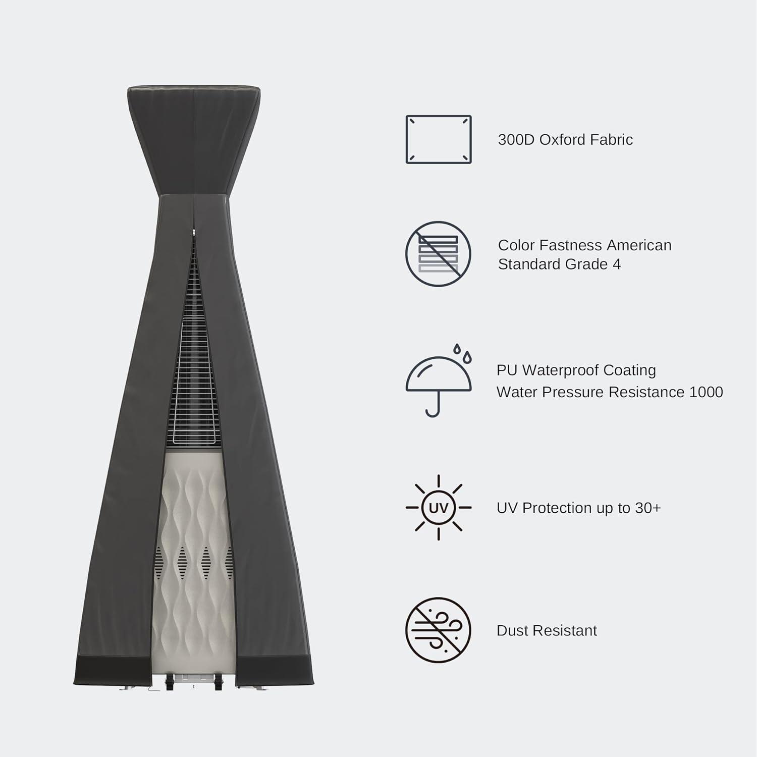 EAST OAK Pyramid Patio Heater Covers with 300D Oxford Fabric, Zipper and Air Mesh Vent, Waterproof & Dustproof Pyramid Outdoor Heater Covers, Wind, Sunlight, Snow-Resistant, Grey(pyramid cover black)